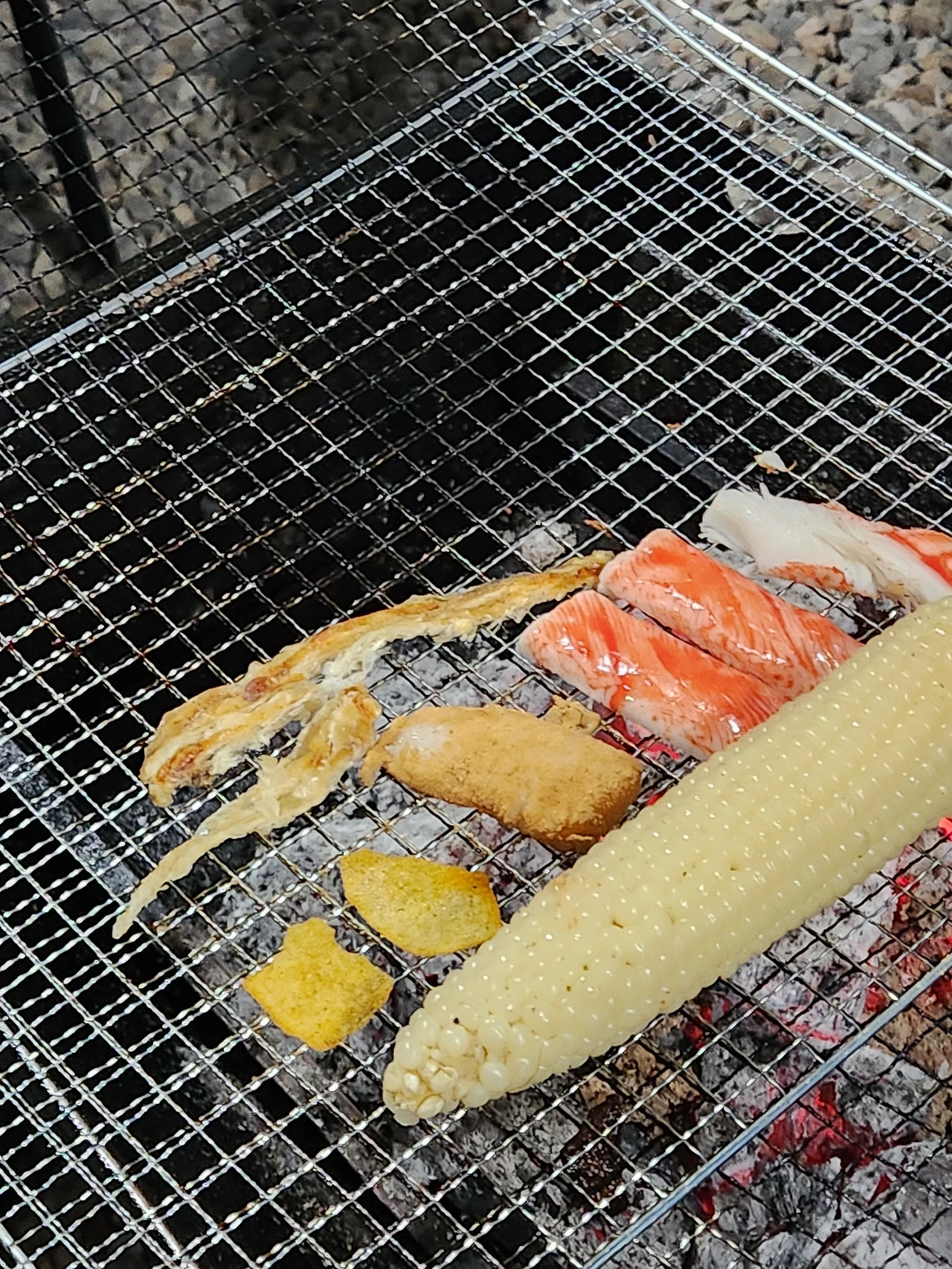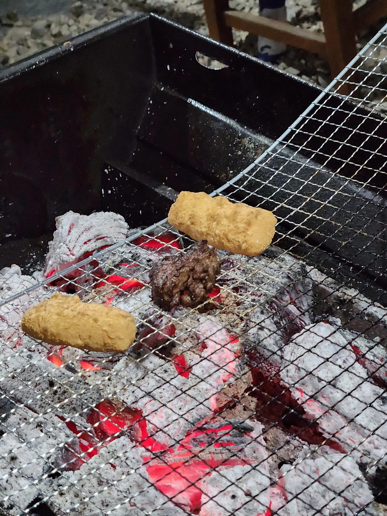 시작은 가리비였다. 별을 보러 산속 펜션에는 그날따라 안개가 자욱했고, 별을 포기한 우리 가족은 예약한 숯불 주변에 편한 마음으로 앉았다. 수산물 시장에서 데려온 가리비를 숯불에 얹었다. 가져오는 동안 차가워졌던 가리비 살이 열기를 만나 통통하게 따뜻한 물이 올랐다. 커다란 가리비 살을 한입에 넣었다. 입 안이 가리비로 가득 찼고, 바다의 고기라고 부를 수 있을 정도로 식감이 훌륭했다. 가리비를 끝낸 후, 고기가 그 뒤를 이었다. 숯불로 구운 고기는 너무나도 잘 아는 맛이니 간단하게 묘사하겠다. 어머니께서 정육점에 친히 바비큐용으로 두툼하게 잘라달라고 부탁한 고기는 화르륵 강하게 올라오는 숯불에도 지지 않고 본연의 맛을 드러냈다. 하지만 숯불의 운명은 전환점을 맞이하게 된다. 저녁 식사를 거의 끝낸 후, 어머니께서 말씀하셨다. “인절미를 구워보자.” 모두가 말렸다. 본인은 동생과 함께 인절미를 구우면 어떻게 될 것인가 토론하기 바빴고, 아버지께서는 그 사이에서 눈치를 보셨던 것 같다. 가래떡은 프라이팬에 흔히 굽는다고 하지만, 인절미를, 그것도 철판에? 인절미를 구우면 철판에 붙을 것이라는 의견과 십자 형태로 교차되는 얇은 철판 틈 사이로 고양이가 철봉에 걸려 흘러내리듯이 주르륵 흐를 것이라는 의견이 팽팽하게 맞섰다. 그 순간 호기심이 생긴 것이다. 호기심이 반대 의사를 이겼고, 인절미 하나를 희생시켜 보기로 결정했다. 인절미 하나를 철판 위에 올렸다. 그리고 모두가 가만히 이를 지켜보았다. 하지만 변화를 빠르게 보여주는 친구는 아니었다. 가족들과 이런저런 이야기를 나누며 인절미를 한 번씩 뒤집어주었다. 그 결과, 타지도, 철판에 붙지도, 철판 사이로 빠져 내리지도 않았다. 이 공을 잔잔해진 숯불과 콩가루에게 돌립니다. 맛은 겉에 묻은 콩가루가 적당히 구워져 고소함이 더해졌고, 그 안에 떡은 굽기 전 찹쌀이 덜 들어가 별로라는 혹평을 받았는데 숯불의 열기를 입어 적당히 따뜻하고 쫀득해졌다. 모두가 “이 조합 찬성이오!”를 외쳐서 2개를 더 구웠다. 이번에는 자신감을 가지고 계속 구우면 어떻게 되는가에 대한 실험을 진행하였는데, 인절미가 터졌다. 폭탄처럼 터진 것은 아니고, 치즈 스틱 한 부분에 구멍을 뚫은 것처럼 작은 구멍 사이로 떡이 흘러나왔다. 신기한 광경이었다. 숯불 실험이 시작되었다. 어디까지 구울 수 있는가. 주변을 살펴보았다. 맛살과 옥수수와 감자칩을 같이 구웠다. 맛살은 아버지가, 옥수수는 어머니가, 감자칩은 나와 동생이 올렸다. 아버지는 구운 맛살을 드시고는, ‘게와 다를 바가 없이 잘 만들었다.’는 평을 남기셨고, 어머니는 옥수수를 드시고는, ‘옥수수 안에 수분이 다 빠져나와서 괜히 구웠다.’는 평을 남기셨다. 감자칩은 굽는 과정이 신기했는데, 과자 안에 있던 기름기가 빠져나와 과자 주변을 반들반들하게 만들었다. 살짝 그 기름이 끓는 것 같다는 생각을 하며 바라보다가, 점점 색이 진해지는 것 같아 얼른 건져 한 입 먹었다. 이거다. 지금까지 먹었던 감자칩은 뭔가 부족했다는 걸 알았다. 감자칩에 조금 남아있던 수분과 유분이 빠져나와 아주 얇고, 툭하면 부서지는 바삭함이 완성되었다. 한 번 씹으니 감자칩이 파사삭 바스러졌다. 이미 감자칩을 다 먹고 남은 작은 두 조각을 얹어본 것이었는데, 감자칩이 더 없는 것이 아쉬울 정도였다. 숯불은 알았을까? 자신의 능력이 이렇게나 무궁무진하다는 것을. 숯불에 무엇까지 올려보았는가. 고기만 올려보았다면, 이제는 새로운 시도를 해보아도 좋겠다. 인절미와 감자칩부터 얹어보기를 추천한다. 물론 찹쌀이 비중이 큰 인절미는 어떻게 될지 모르겠다. 무엇이 되었든, 숯불과의 새로운 꿀조합 음식이 있다는 소문이 들려올 날을 기대한다.
