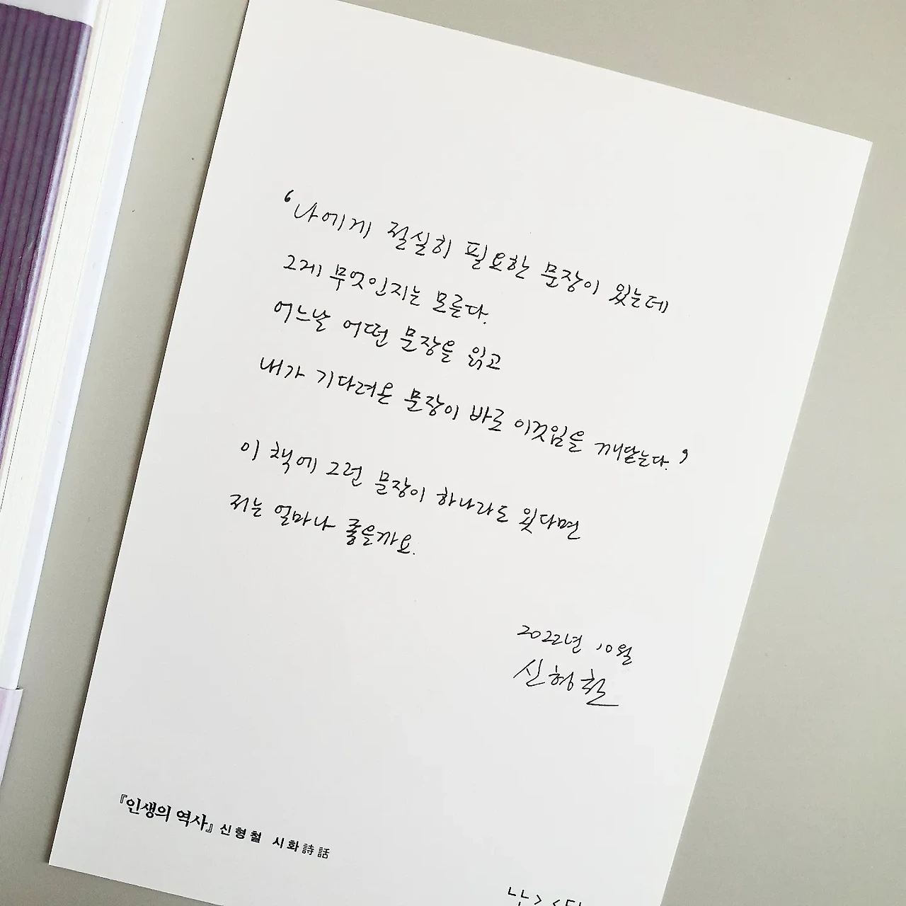 이 글을 쓰고 얼마 지나지 않아 신형철 평론가의 평론관을 알게 되었다. 문학동네 완독챌린지 독파에 <인생의 역사> 완독 후기로 등록한 걸 직접 읽으시고 본인의 소신을 줌토크 때 밝혀주신 것.