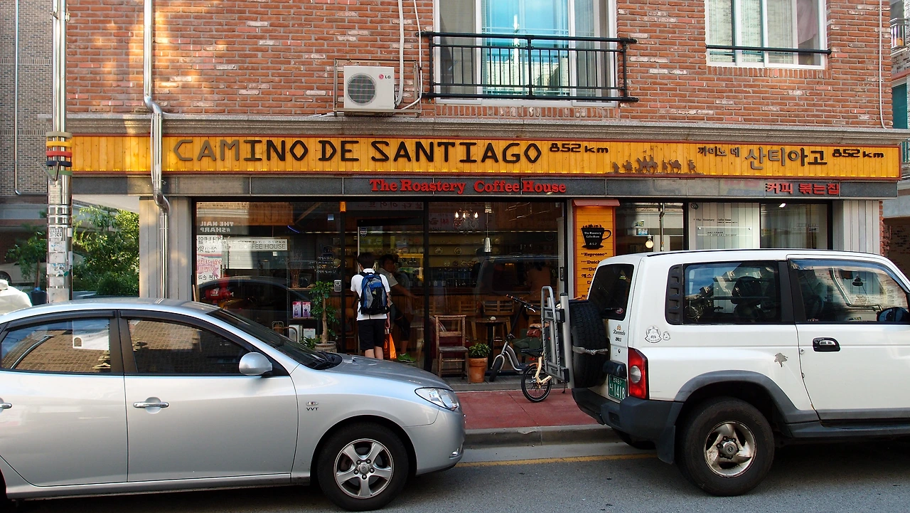 카페 위치는 번화가나 역 근처가 아닌 다소 지역 외곽 느낌에 있었다. 동네 카페란 느낌을 물씬 받았다. 카페 이름은 <까미노 데 산티아고 & 852km>였다.