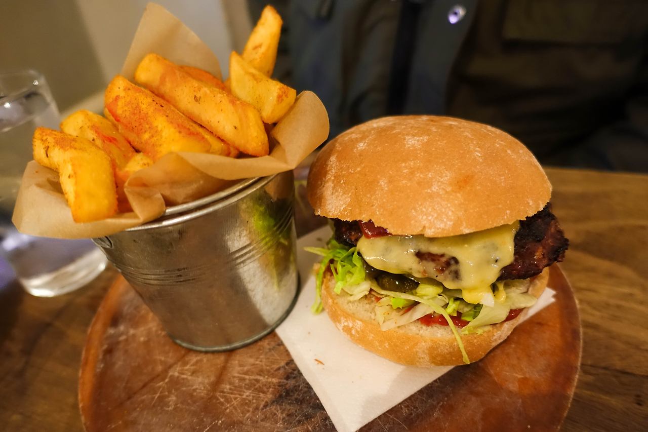 해서 도착했는데 쓰리심 파는 데가 없다. 애플 매장에 물어봤는데 친절하게 설명해줬다. 설명해준 대로 갔는데 안 보인다. 이런. 코벤트 마켓에서 먹으려다 마땅한 데가 안 보여서 오던 길에 괜찮은 펍으로 간다. 버거와 피시 앤 칩스 먹기로.