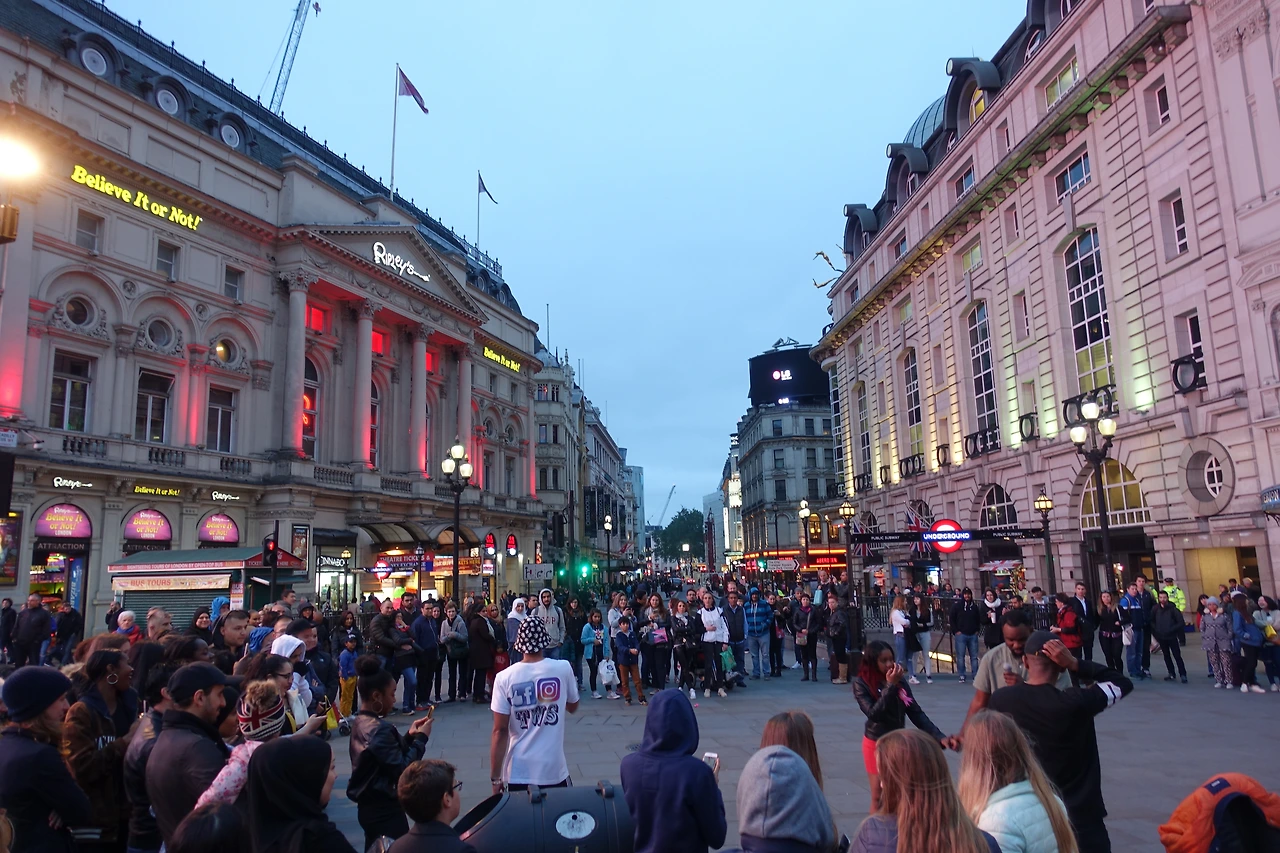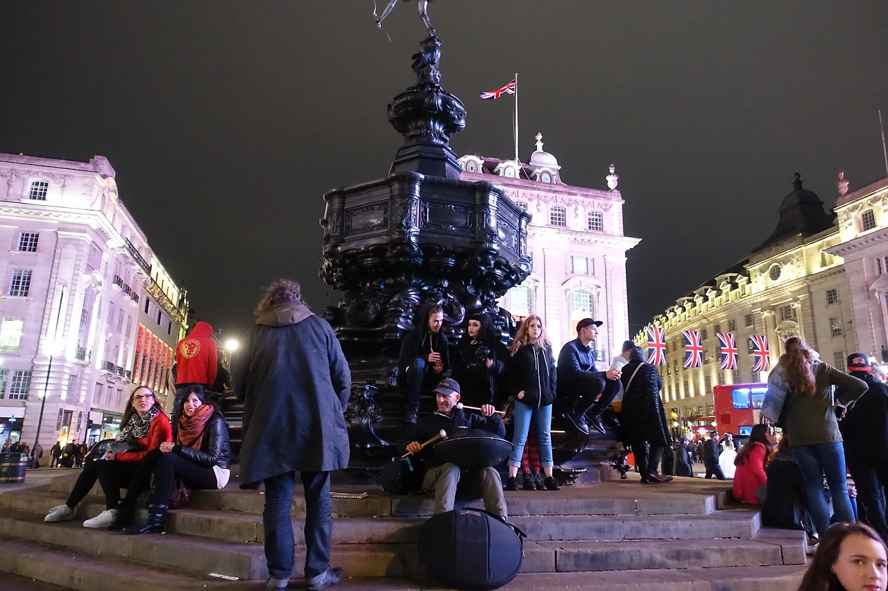 피카델리로 왔다. 노을지기 시작할 쯤이라 뷰가 ㄷㄷ하다. 이것저것 많이 찍는다. 사람도 많다. 여기저기 다니며 많이 찍는다. 찍다가 홀푸드 마켓 들어간다. 우리 어제 간 슈퍼처럼 할인되는지 기다린다. 영국만 파는 음료 있나 찾아보고 산다. 여기는 할인 안 하고 바로 폐기하는 듯 ㄷㄷ. 나와서 사진 더 찍는다. 여긴 이제 해가 완전히 졌다. 관광지인 듯 관광객들 많이 나왔다. 피카델리에 결혼 스냅 찍는 팀이 있다. 많이 추울 듯.