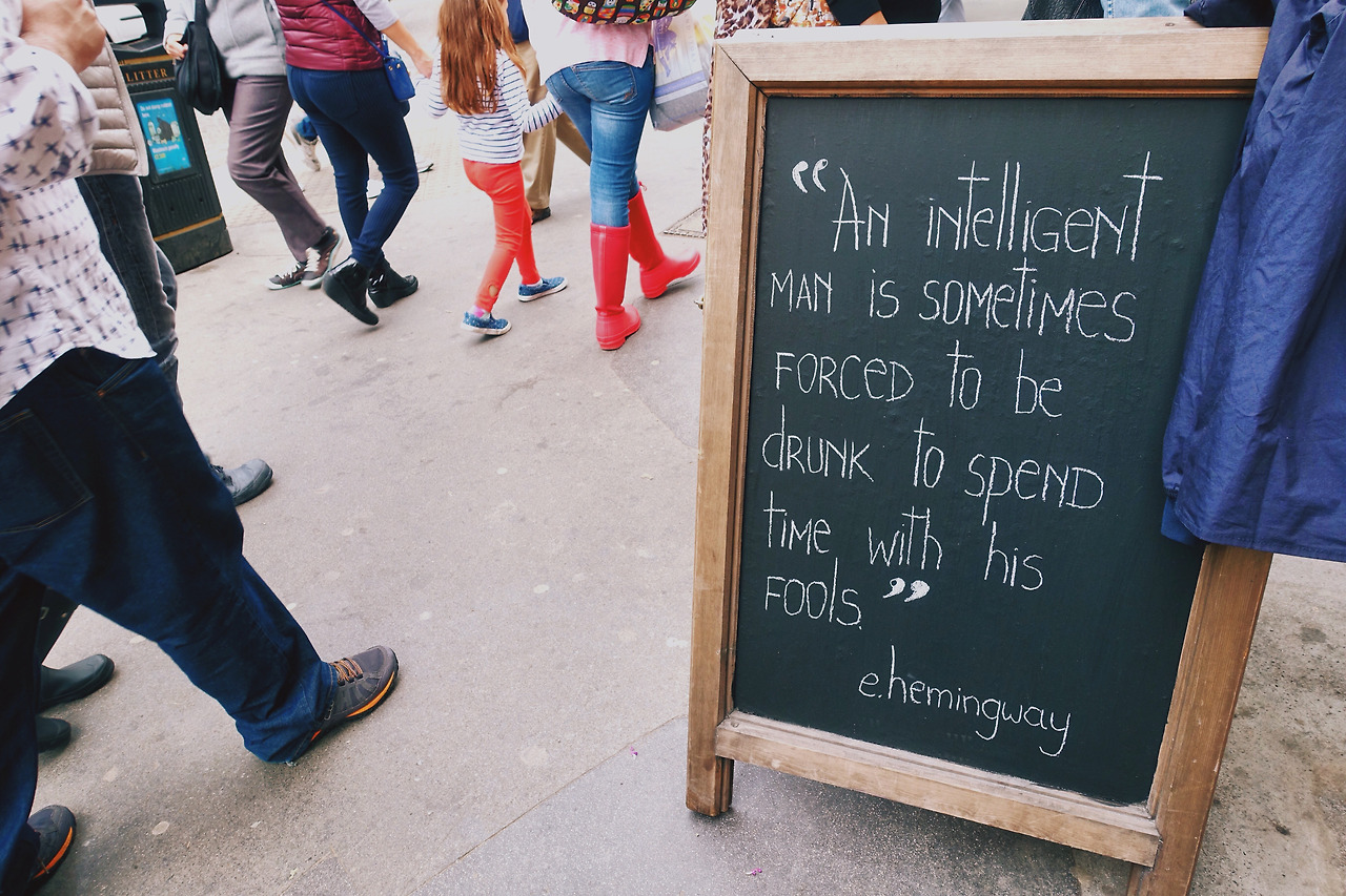 런던 노팅힐 역에서 내려 걸어오다 만난 센스 있는 입간판. 한국에서도 종종 입간판으로 유명한 곳이 있던 게 생각났다. 대충 해석하자면 '똑똑한 사람도 종종 바보처럼 취할 시간을 안 가질 수 없다' 또는 누구나 취할 시간이 필요하다 정도로 볼 수 있겠다. 당연히 이 간판은 펍 앞에 있었다. 간판은 이 가게에 나와서 봤다. 들어갔을 때 느낌이 무척 좋은 곳이었다. 보고 들어갔다면 더 좋았겠다.