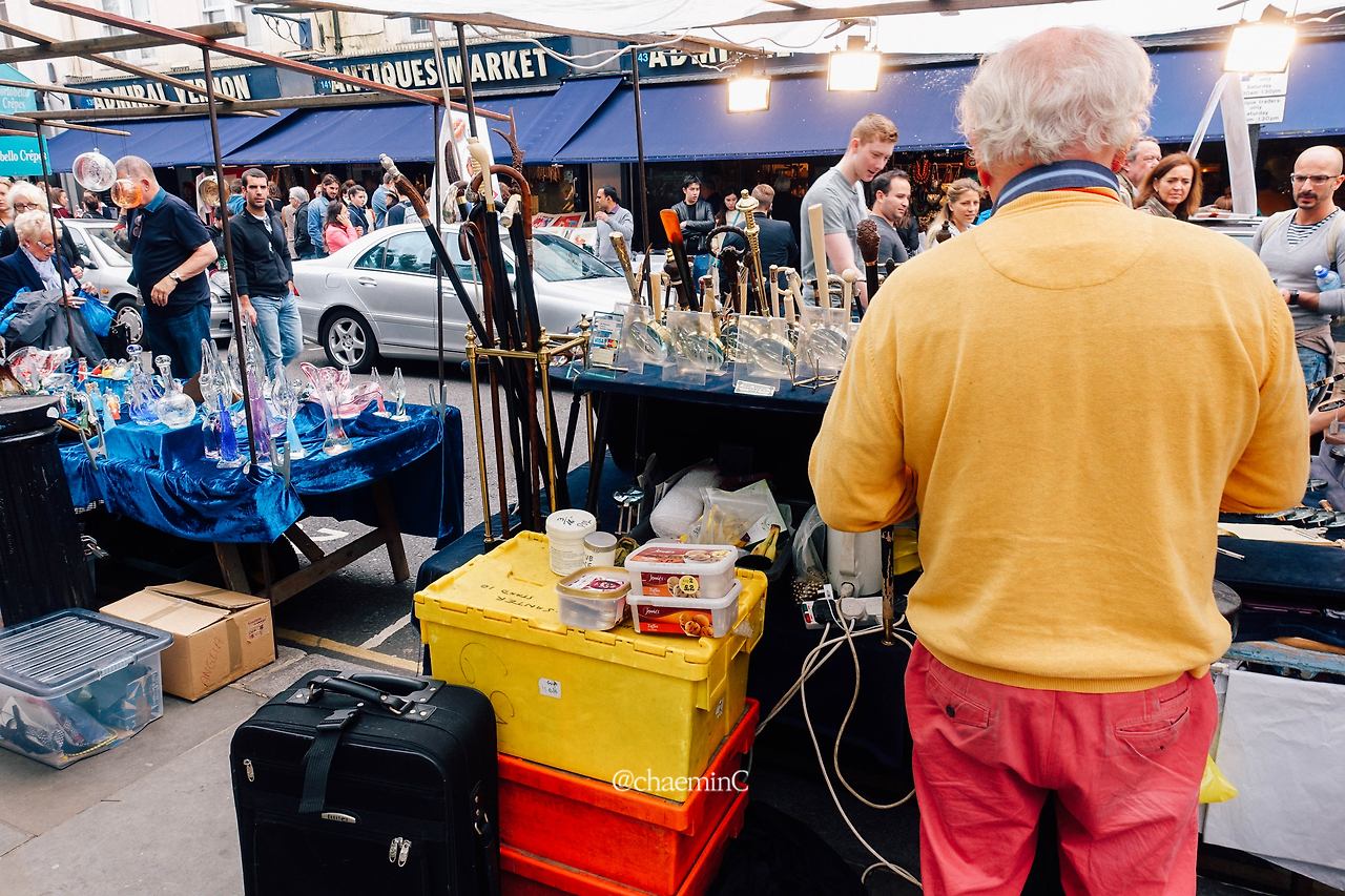 누가 그렸든 간에 배경이 되는 그림은 빈티지한 물건을 파는 상인 분과 어울린다. 원래 그렇게 있어온 것처럼. 노팅힐 시장다움이 그림과 상인 모두에게 있다. 이번 주도 다음 주도 그 자리에 있을 것이다.