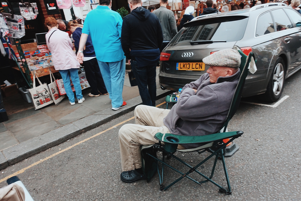 여행 중에 하루 종일 오가다 보면 어디 앉거나 누워 한 숨 자고 싶을 때가 있다. 바쁘고 바쁜 노팅힐 포토벨로 마켓. 그 복잡한 곳 사이에 한가한 자리를 찾아 여유를 누리는 모습이 부럽다. 한 숨의 잠이 한 켠에 있는 피로를 전부 사라지게 해주길.