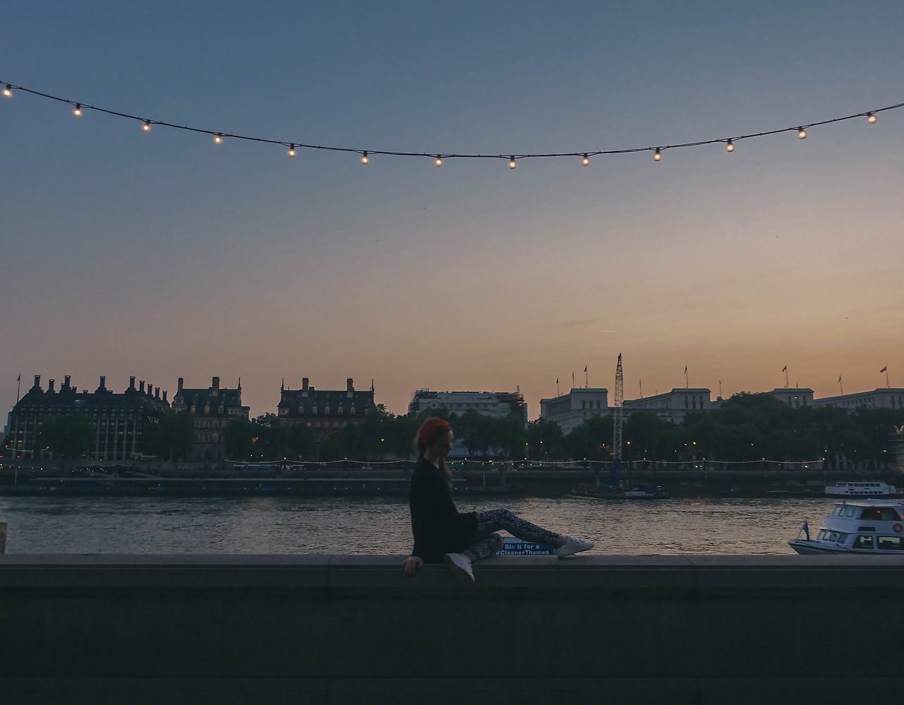 런던 아이와 노을의 놀라운 협연을 더 아름답게 만들어주는 한 버스커의 기타 연주. 셋의 하모니 덕에 이 찰나가 아름답게 기억된다.