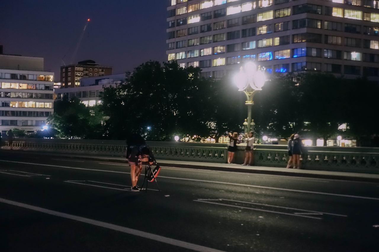도로 위 삼각대를 설치하면서 까지 빅벤을 찍으려는 남자. 분명 위험하고 민폐다. 그럼에도 눈에 들어왔다. 똑딱이 카메라로 밤에 빅벤 찍기 어렵다. 손으로만은 더더욱. 그냥 몇 번 찍고 말았다. 이 정도면 됐다고. 그리고 오는 길에 본 이 남자. 이 사람은 어떻게 보면 이 정도면 됐다엔 만족하지 못한다. 목숨을 걸어서라도 찍고 싶은 게 있다.
