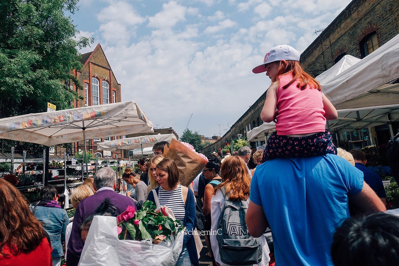 런던 플라워 마켓은 사람 반 꽃 반이었다. 꽃 자체를 그리 좋아하지 않는 데다 사람이 가득한 건 질색하는 나로서는 뇌가 마비되는 순간이었다. 그때 눈에 들어온 한 부녀의 뒷모습. 아빠의 어깨 위에 올라탄 덕에 딸은 누구보다 위에서 편하게 꽃시장을 둘러본다. 아빠의 어깨 위에 있는 자신의 무게와 책임감 등의 무게를 언젠간 알겠지. 여행에서 딸을 목마 태워 둘러본다는 낭만의 현실이 쉽지 않다는 것도.