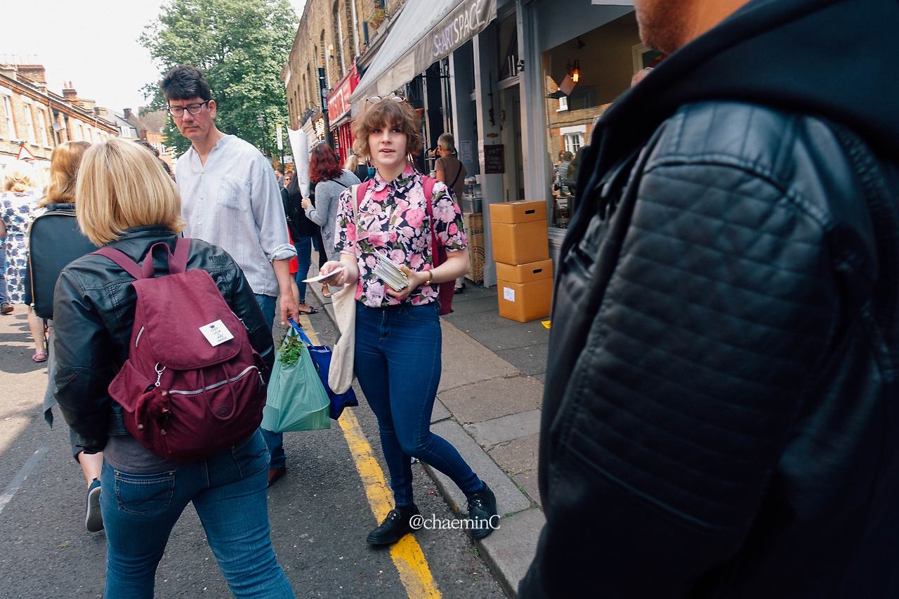 런던 플라워 마켓은 일요일에 열린다. 우리도 그렇지만 이 날엔 사람이 모일 곳만 우글우글하고 주택가는 한적하다. 마켓으로 가기 몇 블록 전은 (내가 보기에) 주택가인데 따뜻하게 한적했다. 동시에 같은 방향으로 가는, 사람들이 모인 곳으로 가는 여정이다. 통과하는 이들이 마치 동료 같다. 이 한적한 여유를 다시금 누리고 싶다.