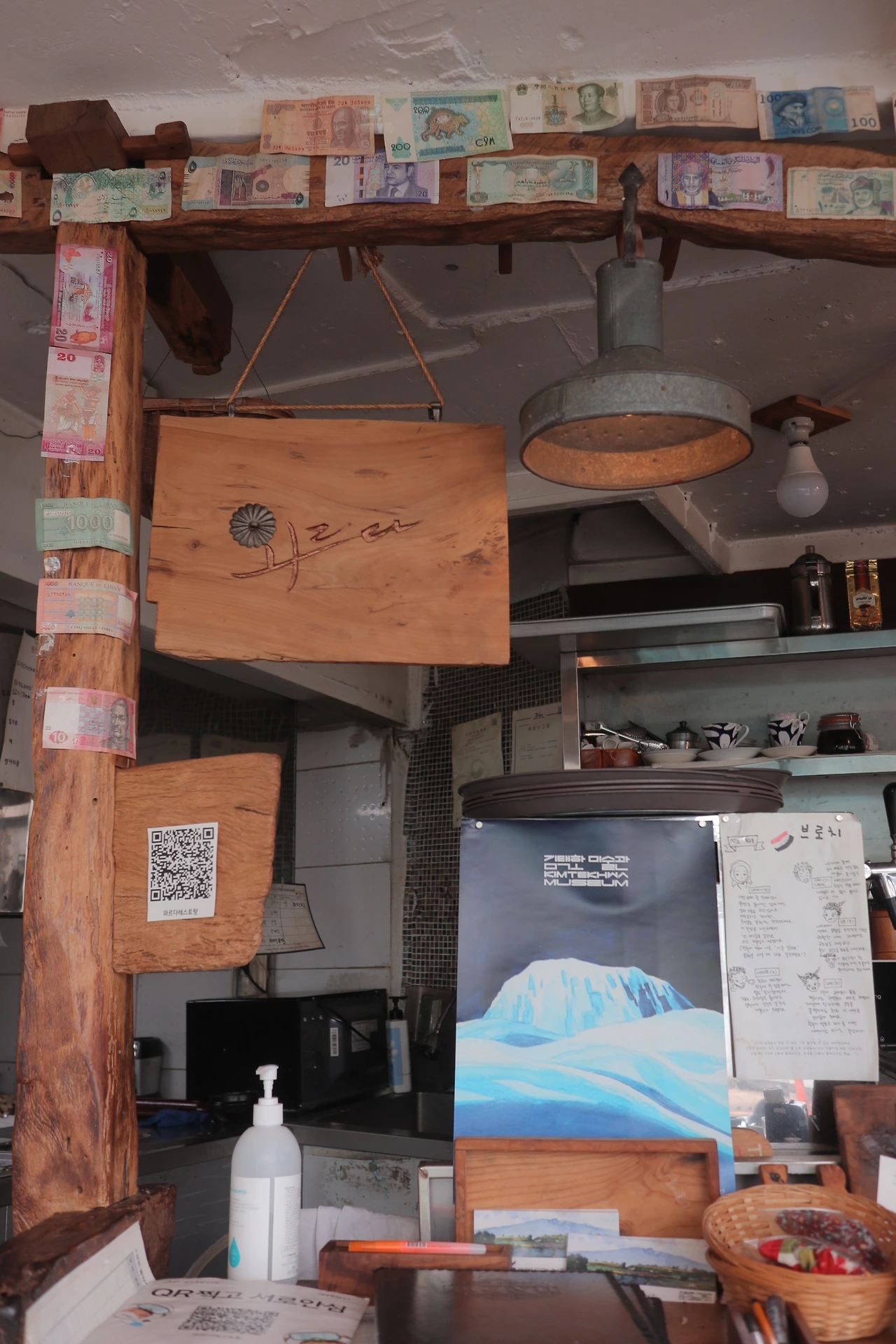 생각했던 것보다 더 이국적이고 더 아기자기한 공간이었다. 제주 속에 작은 중동이 있었다. 창밖으로 커플 한 팀이 앉아 있는 것이 보였고, 여자는 행복하게 웃으면서 빵을 뜯고 있었다. 저 찐웃음은 맛없는 음식이라면 나올 수 없는 미소라 생각하면서 조용히 문을 열고 들어와 앉았다. 공복으로 운동을 마치고 온 것이라 나는 배가 매우 고팠고, 들어오자마자 맛있는 냄새가 나서 더 배가 고팠다. 처음 오는 곳인데 정겨운 느낌이 드는 곳이었다. 자연스럽게 맞아 주신 사장님 덕분일까. 자리에 앉자 금방 메뉴판을 건네주셨다.