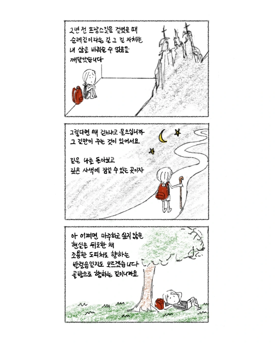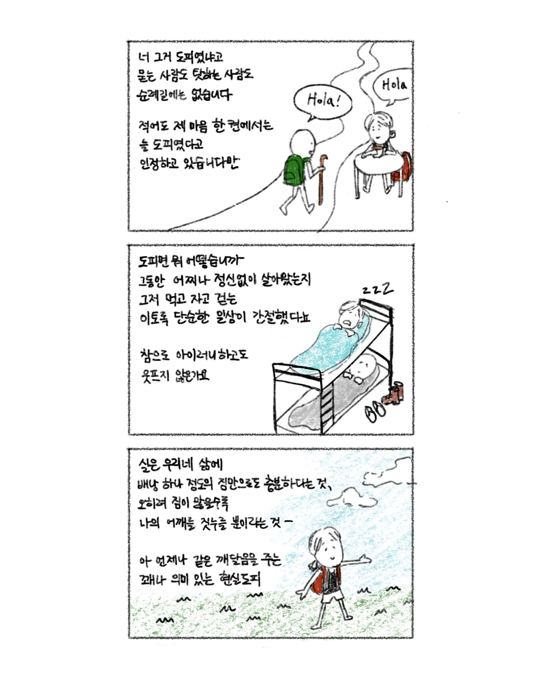 2년 전 프랑스길을 완주했던 내 모습을 떠올리며 나는 속으로 조용히 그들에게 텔레파시를 보냈다.