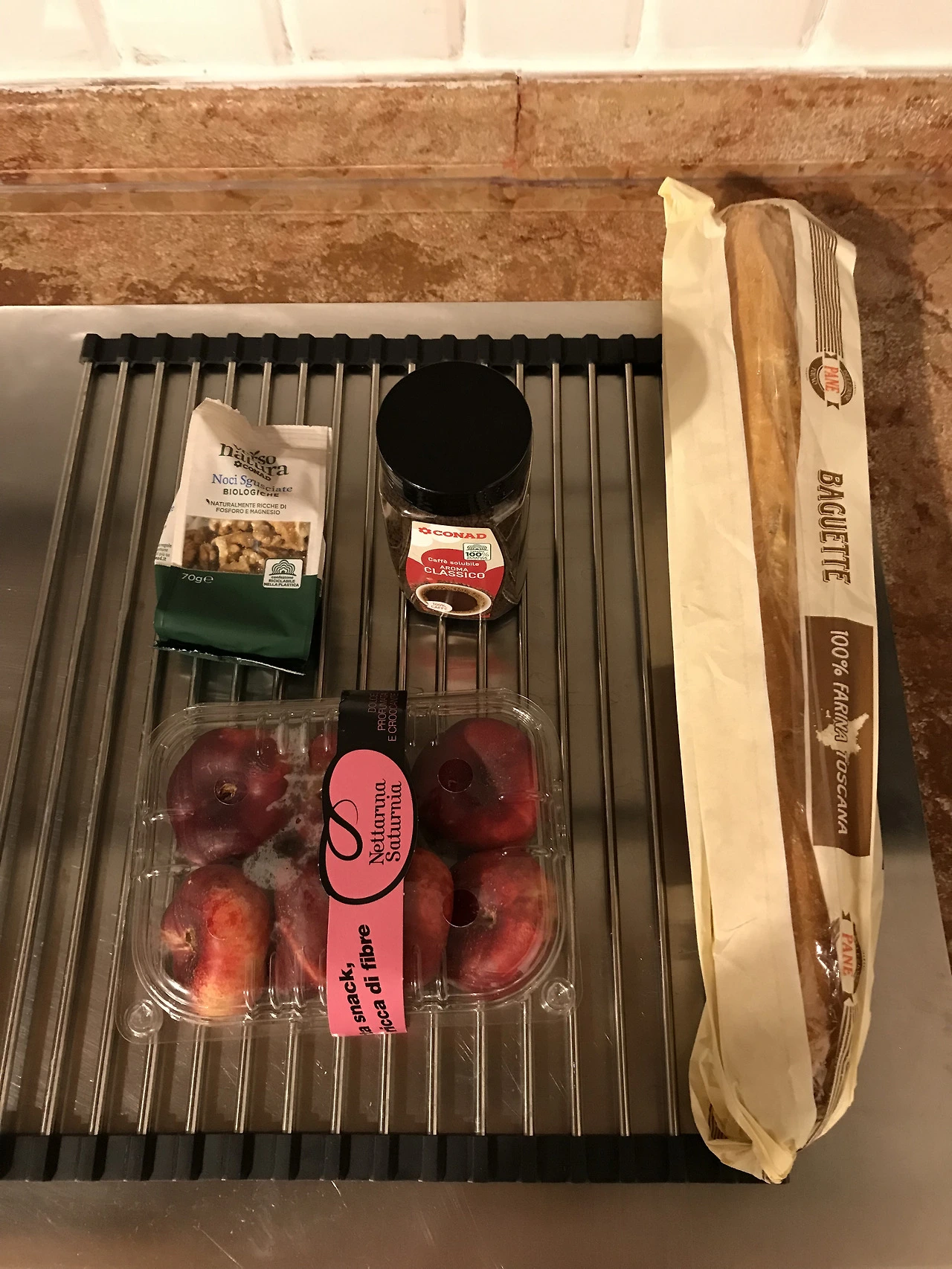 이 숙소에 체크인한 첫날, 우리는 미국으로 치면 트레이드 조, 한국으로 치면 이마트(보단 작다) 같은 이탈리아 마트를 갔다. 기억에 남는 건, 입구 왼편으로 들어가자 캐셔가 우리를 막아 세우며 오른쪽으로 가라고 손짓하는 것이다. 그렇게 입장하자마자 펼쳐진 한 사람 정도 겨우 서있을 수 있는 좁고 긴 복도, 양옆으로 진열된 물건들. 그렇게 미로처럼 구불구불 따라 들어가는 것이다. 과일, 정육, 치즈, 시리얼, 소스류, 생필품, 커피를 지나 마침내 도착한 곳은 주류 코너. 정중앙 관제탑처럼 쌓인 맥주 박스와 그 주위를 둘러싼 군대 같은 와인병들. 우린 마트 브랜드 인스턴트커피 믹스를 샀으며, 이 커피는 우리의 여행 마지막날까지 함께 다니게 된다.