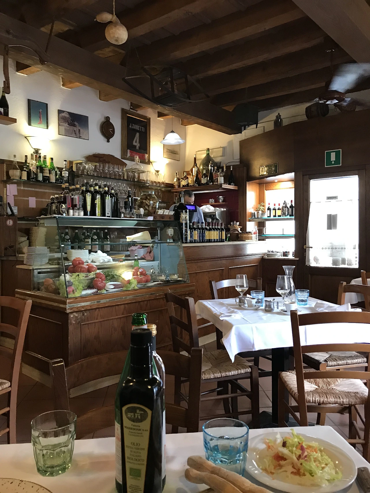 우리가 머무는 이 동네는 피렌체 중심지에서 강 건너 조금 떨어져 있기 때문에, 꽤 조용하다. 나와 엠은 이 동네가 아직 젠트리피케이션이 일어나지 않은 아트 디스트릭트일 수도 있겠다고 생각했는데, 그 이유는 개성 있는 젊은 손님들이 작업을 하고 있는 카페나, 바이닐 샵, 라이브 바, 빈티지 샵들이 많았기 때문이다. 그 골목으로 가기 딱 직전에 있는 이 레스토랑은 역사가 꽤 깊어 보였다. 만화에서 보던 배 나온 이탈리안 아저씨들이 손바닥보다 작은 종이를 가져와 메뉴를 휘갈겨 쓰며, 곳곳엔 코르크 마개가 올려져 있고, 주방은 화가 나지 않았지만, 싸우는 것처럼 대화하는 이탈리안 셰프들이 있다. 천장을 올려 다 보니, 다양한 종류의 바구니들이 매달려 있었는데, 무슨 의미인지는 몰라도, 멋있었다.