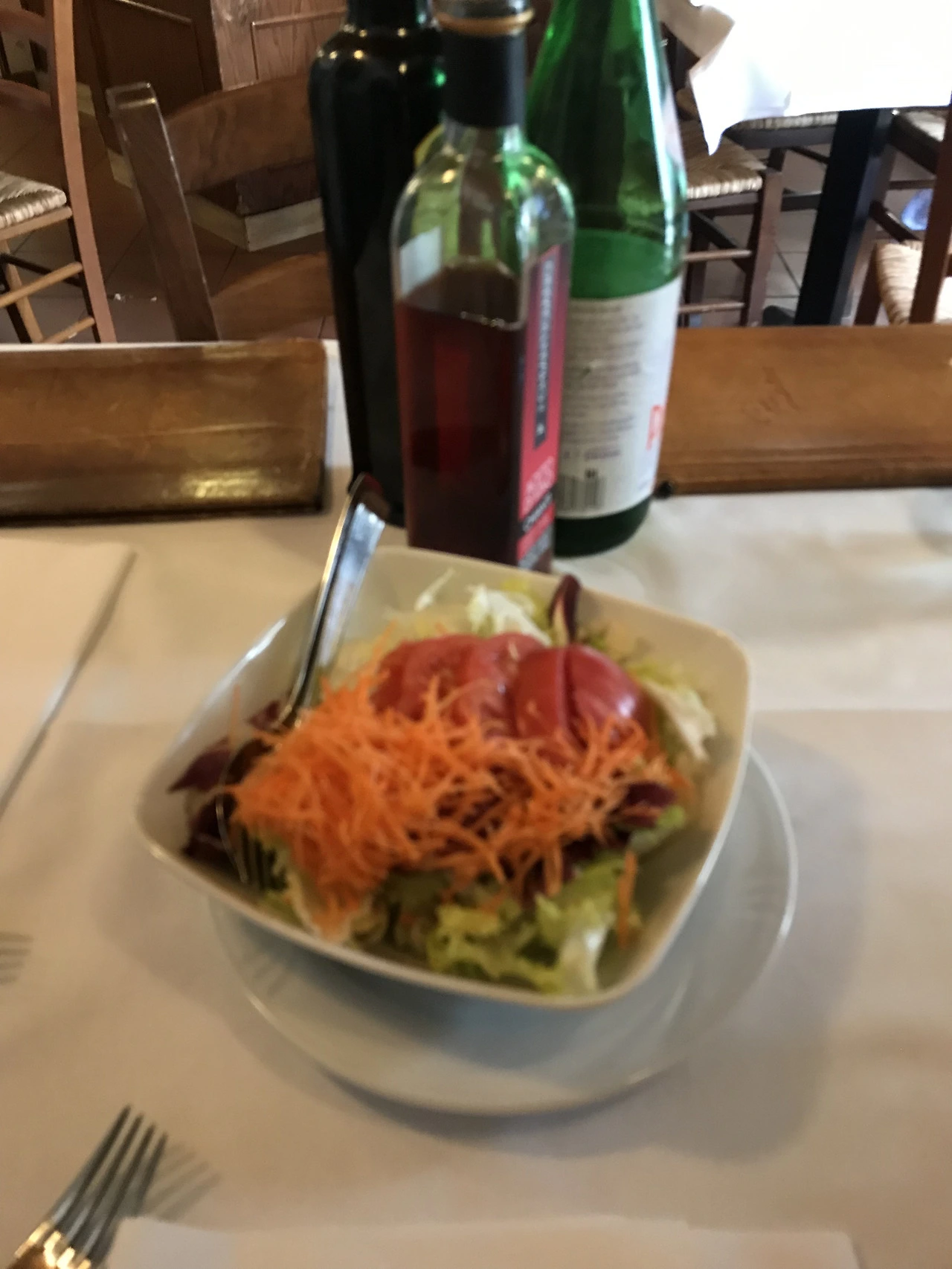 공식적으로 이탈리아에서 함께 하는 첫 끼다. 핌피는 스페인에서 여기까지 오는 비행으로, 우린 로마에서 여기까지 온 기차여행으로 모두 피곤했기에 술을 마시지 않고 물 잔으로 짠-을 했다. 나중에 우리끼리 고급 와인을 한 병 따며 공유한 것인데, 한국어로는 짠-, 멕시코에서는 살룻 salut- 그리고 미국에서는 치어스 cheers이다. 이중 salut은 -위하여라는 뜻인데, 내가 재채기를 했을 때 핌피가 bless you 대신 salut 이라길래 어떤 의미냐 묻자 네 건강을 위하여라는 뜻이랬다. 개인적으로 신앙이 없는 나는 이 버전이 꽤 마음에 들었다. 누군가가 재채기를 했을 때 salut이라 말하면, 당신도 똑같이 salut이라 하면 된다.