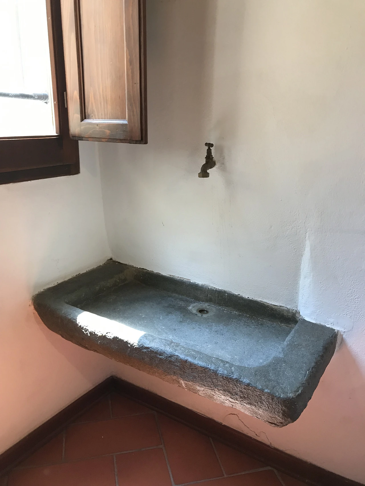 그러나 당연히 오른쪽으로 작은 복도가 나있었고, 그저 안쪽으로 열리는 현관문에 가려 나는 보지 못한 것이다. 종종 이렇게 발견하지 못한 성급한 상상으로 하루를 채운다. 기역자로 꺾어 들어가면 차례로 다용도실, 욕실, 작은방, 큰방이 있다. 작은방은 햇빛이 통하지 않아 어둡고 싱글 침대 하나에 나무 책상과 의자가 있었다. 수도원 방 같았다. 반대로 안방은 널찍했으며, 창도 두 개가 있고, 퀸 사이즈 침대에, 화장대까지 있었다. 방구석에는 무릎 높이의 돌로 만든 싱크대가 있었다. 아마 옛날에는 여기가 빨래나 요리를 하던 공간이었나 보다. 우린 핌피에게 방 선택권을 주었지만, 그녀는 다음번에 자신이 큰 방을 쓰겠다며 흔쾌히 우리에게 안방을 내어주었다.