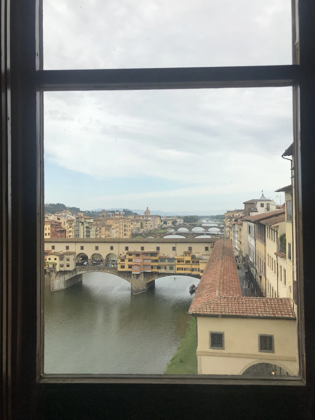 이 미술관에서 가장 기억에 남는 것은 창문이다. 각 방마다 미술품이 한가득인데, 사람들은 복도로 나와 다른 방으로 옮겨 갈 때면, 창 밖 풍경에 시선을 떼지 못한 채 감탄했다. 이 미술관은 피렌체를 가로지르는 강 바로 앞에 위치하고 있어서 건너편 피렌체의 북쪽 동네가 훤히 다 보였다. 여러 색채의 건물들과 동네의 경치가 아름다웠다. 각 창문마다 사람들이 줄을 서 기다렸다가 풍경을 뒷배경으로 사진을 찍는 정도였으니… 역시 자연이 예술보다 더 아름답나 보군, 생각하게 만드는 현상이었다.