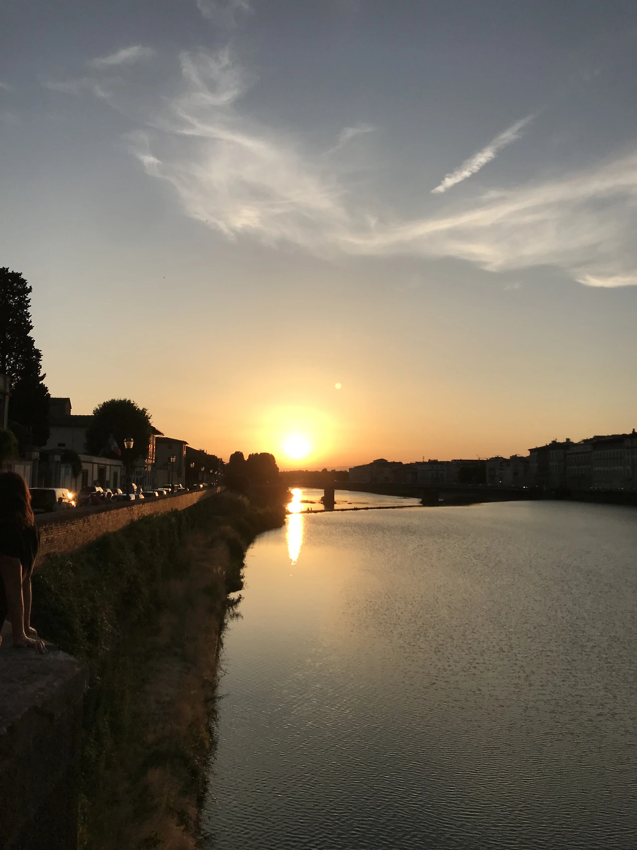 이탈리아의 여름은 해가 아주 길다. 오후 아홉 시까지 밝다. 우린 늦은 저녁을 먹고, 강가로 나와 젤라토를 사 먹었다. 핌피는 라즈베리 맛을, 나는 바닐라와 초콜릿 조합을, 엠은 카푸치노 맛을 골랐다. 이탈리아에서 먹는 첫 젤라토였다. 강 다리에 기대어 먹는데, 서쪽으로 해가 지고 있다. 쨍한 주황색의, 정갈하게 동그란, 거대한 오렌지가 천천히 입수하고 있는 것처럼 보였다. 나는 오렌지맛 젤라토가 먹고 싶어진다. 우린 열기에 녹아 흘러내리는 아이스크림에 집중하면서도 거대한 오렌지 태양에서 눈을 떼지 못한다. 혀와 눈이 따로 논다.