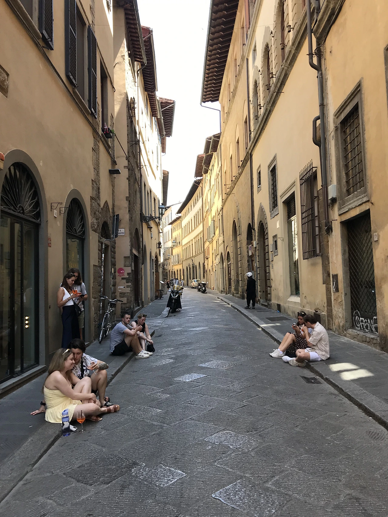 나는 엠이 쇼핑하는 동안 가끔씩 가게 밖을 나와 보도블록에 앉아 있고는 했다. 빈티지샵은 먼지가 너무 많아 계속 재채기가 나기 때문이다. 그렇게 길가에 앉아 있으면, 다양한 사람들을 보게 된다. 택시가 오지 않아 수북한 캐리어 더미를 끼고 기다리고 있는 가족, 아버지는 우버를 부르고, 어머니는 어딘가 전화를 하고 있다. 아이들은 캐리어 위에 멀뚱히 앉아 있거나, 그 주변을 빙글빙글 돌며 장난을 친다. 또는 신혼부부로 보이는 아시안 커플. 무심결에 한국말이 들린다. 피렌체에서 한국말을 총 4번 정도 들었는데, 모두 다음 일정에 대한 내용의 대화였다. 어떻게 가고, 얼마나 걸리는지,에 대해서. 타국에서 지나치는 모국어를 잡아채는 순간은 소중하다. 그리고 내 옆에서 어영부영 걷고 있는 엠과 핌피를 보며, 그 한국인 커플이 새삼 편리해 보이기도 했다. 아이러니다. 느긋한 이들과 함께 있으며 마음이 정화되면서도, 깊숙한 본능 속에는 분주함이 여전히 존재하는 것.
