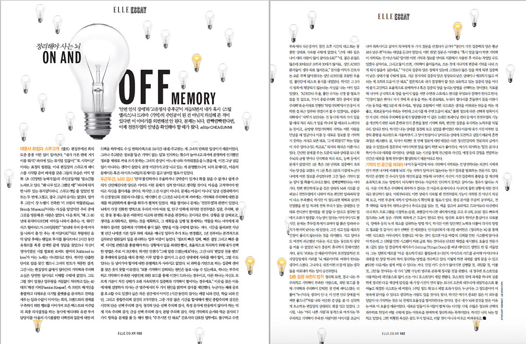 <엘르> 편집부에선 회의 도중 종종 이런 일이 일어난다. “내가 가본 덴데 거기 이름 뭐지? 파리에 있는 뮤지엄 있잖아.” ‘또 시작이군’ 이라는 표정의 팀원들. 이내 편집장의 스무고개 레이스를 시작할 준비 태세를 갖춘 그들의 모습은 마치 영화 <초 (민망한) 능력자들>의 주인공들처럼 ‘염소(!)’를 노려보고 있다. “왜 나무 있고 그랬던 데!” ‘파리에 위치한 나무 있는 뮤지엄’이라니, 스무고개일 줄 알았던 힌트는 두 번에 그쳤고, 결국 그날의 승자는 없었다. 얼마 후 그곳이 장 누벨이 건축한 ‘키 브렁리 박물관(Quai Branly Museum)’이라는 사실을 알았지만 우리 중에 그곳을 방문해 본 사람은 없었다. 다음 회의. “왜 그 80년대 뮤직비디오인데 여자들 나와서 춤추는 거. 뭐지? 리즈 틸버리스가 스타일링한!” “80년대 무비 중에 여자들 나와서 춤 안 추는 게 어딨어요?”라고 투덜대던 음악 담당 후배는 웬일로 투지를 불사르더니 2시간 동안 유튜브를 폭풍 검색한 끝에 정답을 찾았으나 자신이 영아기였던 시절 발표된 로버트 팔머의 ‘Addicted to love’가 아는 노래는 아니었다고 한다. 하지만 단출한 단서로 답을 찾긴 했으니 그녀의 힌트가 적중한 걸까. 그간 나는 편집장의 삶에서 얼마간의 기억력과 주의력 소실은 당연한 일이라고 이해할 수밖에 없었다. 그도 그럴 것이 엄청난 업무량을거침없이 처리하고 있는 40대의 ‘패션 키퍼(Passion Keeper)’, 즉 프린트 매거진을 총괄하고 다채로운 디지털 플랫폼을 분석하고 전략을 세우는 일과 수없이 이어지는 회의, 브랜드와의 관계를 구축하기 위한 행보를 이어가며 모든 텍스트와 비주얼의 최종 의사결정을 하는 동시에 에디터와 유관 부서 담당자를 아울러 시시콜콜한 디렉션과 질문에 대한 피드백을 하루에도 수십 번씩(카톡으로 24시간 내내) 주고받는 게 그녀의 반복된 일상이기 때문이었다. 그러나 주고받은 정보를 ‘들은 기억이 없는 일’로 인지하는 횟수가 늘어나고 과거에 분명하게 인지했던 정보를 제대로 꺼내 쓰지 못하는 그녀의 증상이 어느새 나와 가까워졌음을 느꼈을 때, 이건 그냥 넘길 일이 아니라는 생각이 들었다. 분명 어딘가가 고장 나고 있는 게 분명했으니까. 뇌의 문제이든, 마음의 문제이든 혹은 라이프스타일의 문제이든 짚고 넘어갈 필요가 있었다.