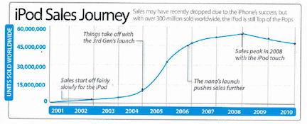 우리가 스티브 잡스, 혹은 애플을 생각할 때 떠오르는 모습은 검은 옷차림의 잡스가 프레젠테이션을 통해 신제품을 발표하고 청중들은 브라보를 외치는 장면이다. 그러나 적어도 2001년, 첫 아이팟 출시는 이런 장면과는 거리가 멀었다. 아이팟이 처음 출시된 때로부터 시장에서 폭발적인 반응을 얻기 까지는 3년이 넘는 시간이 걸렸다. 애플의 아이팟의 성공은 하루아침에 이루어진 것이 아니었다.