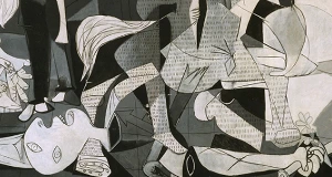 우리는 <게르니카>라는 작품의 제목과, 잘 알려진 피카소의 일화를 통해 이 그림 속의 세부적인 요소가 무엇을 의미하는지 어렴풋이 알고 있다. 하지만 작품을 놓고 보았을 때는 전쟁과 폭격을 연상시킬만 한 요소가 등장하지 않는다. 오직 고통스러워하는 사람들이 뒤엉켜 있을 뿐이다.