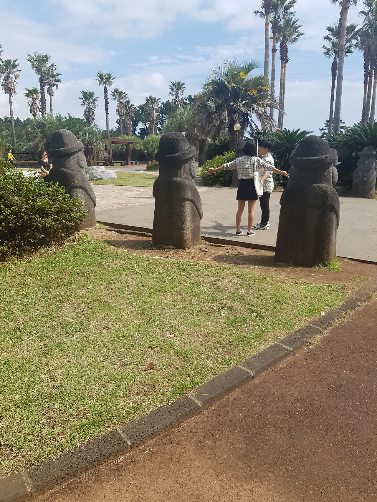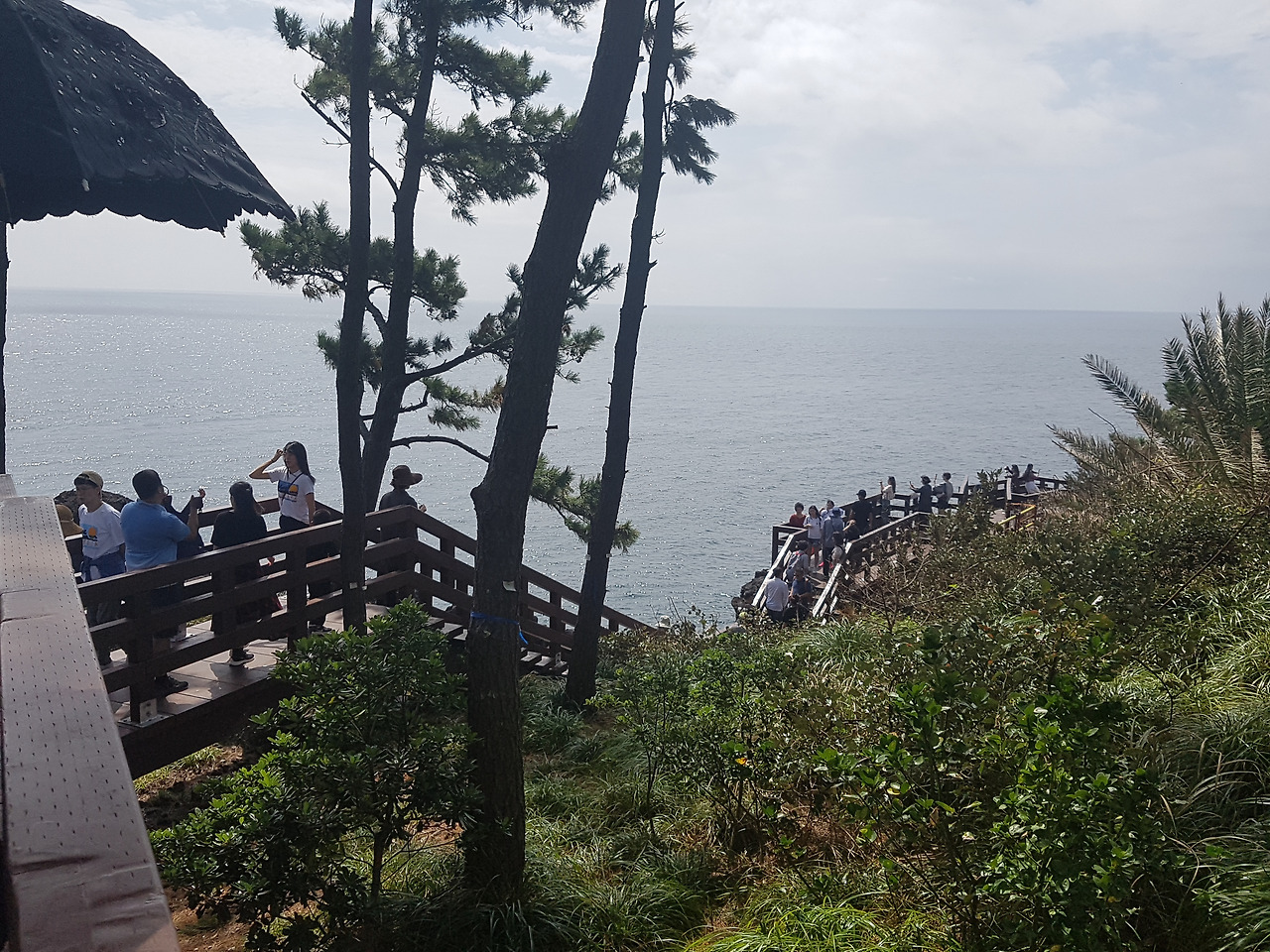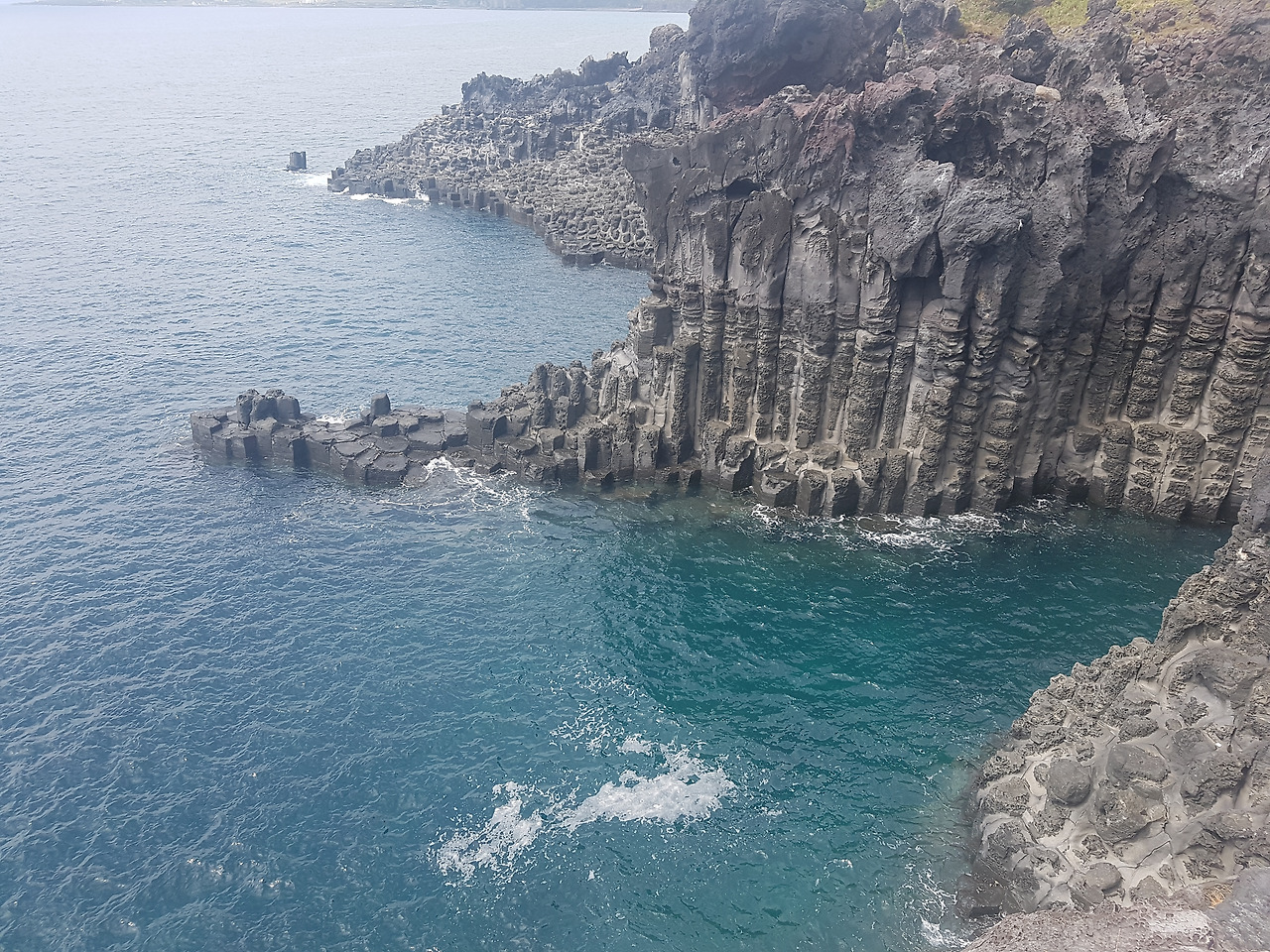 중문은 하나의 거대한 관광단지를 이루고 있다. 푸른 바다의 동선을 따라 해변, 호텔, 박물관, 맛집까지 다양하게 모여 마을을 이룬다. 중문은 외지인을 중심으로 회전하는 제주 아닌 제주의 동네다. 단지를 골고루 둘러볼 시간과 교통이 없었기에 오늘은 중문의 대포 주상절리만 보기로 했다. 구름이 조금 꼈을 뿐 다행히 비는 오지 않고 있었다. 식구 누나는 식구 둘을 더 태우고 흥겹게 달렸다.