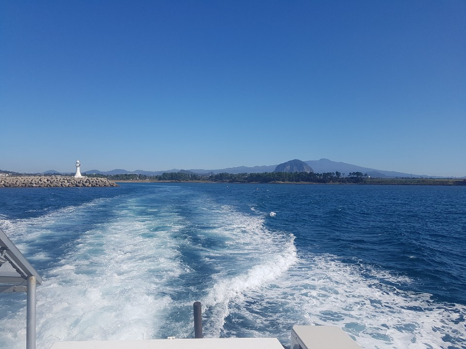 서귀포와 마라도를 왕복하는 배가 하루에 몇 번씩 사람들을 싣고 바다를 가른다. 사람들은 파도가 잔잔한 날 갑판에서 바다를 보고 파도가 거센 날은 의자에 앉아서 잔다. 오늘은 날이 좋으니 갑판으로 나와 바람을 맞고 사진을 찍는 사람들의 표정이 한없이 밝다. 따뜻한 가을 햇볕이 바다에 튕겨 반짝이는 30분 거리의 뱃길은 생기 있고 힘차다.