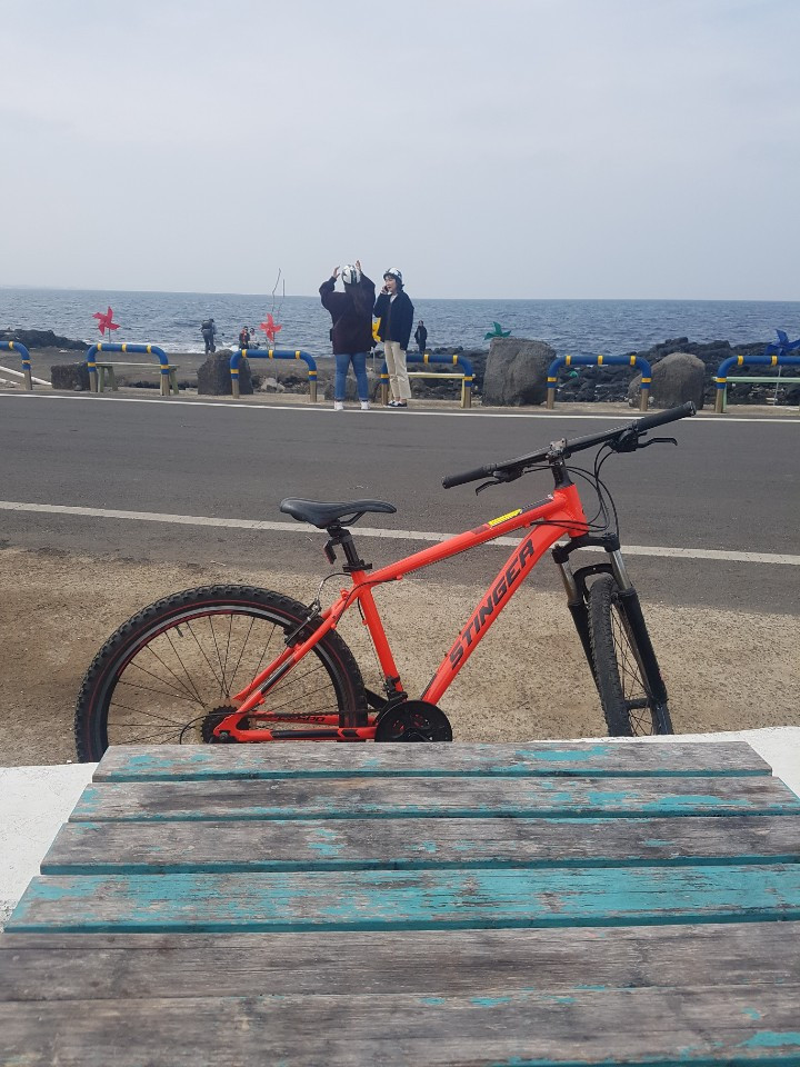 예전엔 스쿠터로 돌았지만 오늘은 자전거다. 자전거는 내 두 다리를 동력으로 나아간다. 허벅지 근육의 장단에 맞춰 무릎 관절은 정밀한 기계처럼 부드럽게 움직인다. 오랜만에 자전거를 타며 난 내 몸이 무사함을 느낀다. 보다 사람에 가까운 기구의 도움으로 나는 시원한 우도를 돈다. 땀이 조금 나고 다리가 저려오지만 바람이 열기를 식히니 우도를 만끽하기 충분하다.