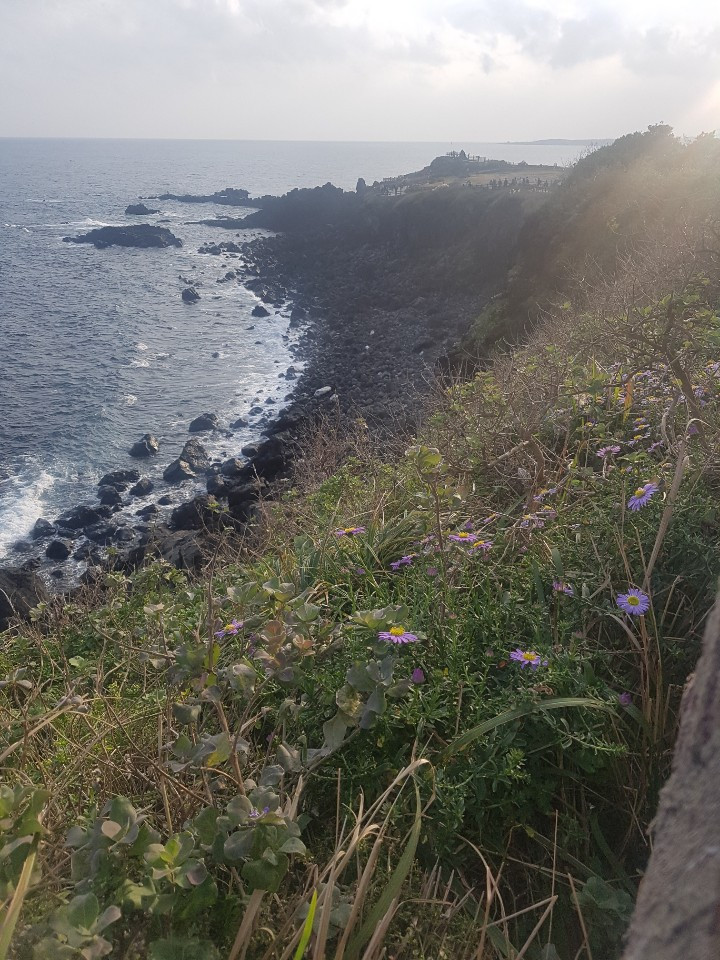 제주는 바위섬이라 아름답고 바다와 맞닿는 어떤 바위는 특히 더 아름답다. 섭지코지가 그렇다. 바람이 제법 불어 오늘은 바다가 힘이 있다. 바람이 계속 부딪혀 오는 섭지코지 절벽에서 세를 이룬 보라색 공작초와 듬성듬성한 노란 씀바귀 꽃이 끊임없이 흔들린다. 제법 황갈색 빛을 띠는 가을의 잔디 사이를 보랏빛으로 수놓은 공작초보다 사람이 이룬 세력이 더 크고 건강해 주말의 섭지코지는 발 디딜 틈이 없다. 사람의 발과 다리는 완만한 섭지코지를 가볍게 오르내린다. 평화로운 언덕 아래 자리를 차지하기 위한 주차장은 전쟁터다. 선착순에서 이긴 자들이 온전히 누리며 오르는 곳이 섭지코지다. 돌로 빚어진 절벽은 인간의 삶과 다르지 않다.