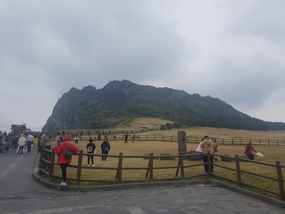 입구 아래 주차장부터 거대한 관광버스 몇 대가 나란히 주차되어있고 매표소 근처는 타국의 언어로 북적였다. 한국인보다 중국인이 많은 이곳에서 나는 홀로 표를 끊었다. 나는 혼자였으므로 완전한 한국인도 아니고 그렇다고 중국인도 아닌 어설픈 객이었다. 일출봉과 각국의 사람이 만들어 내는 매표소 풍경 속에 나는 어색하게 녹아있었다. 표는 한 장에 5천 원. 비싼 건지 싼 건지 판단할 수 없는 가격이었다.