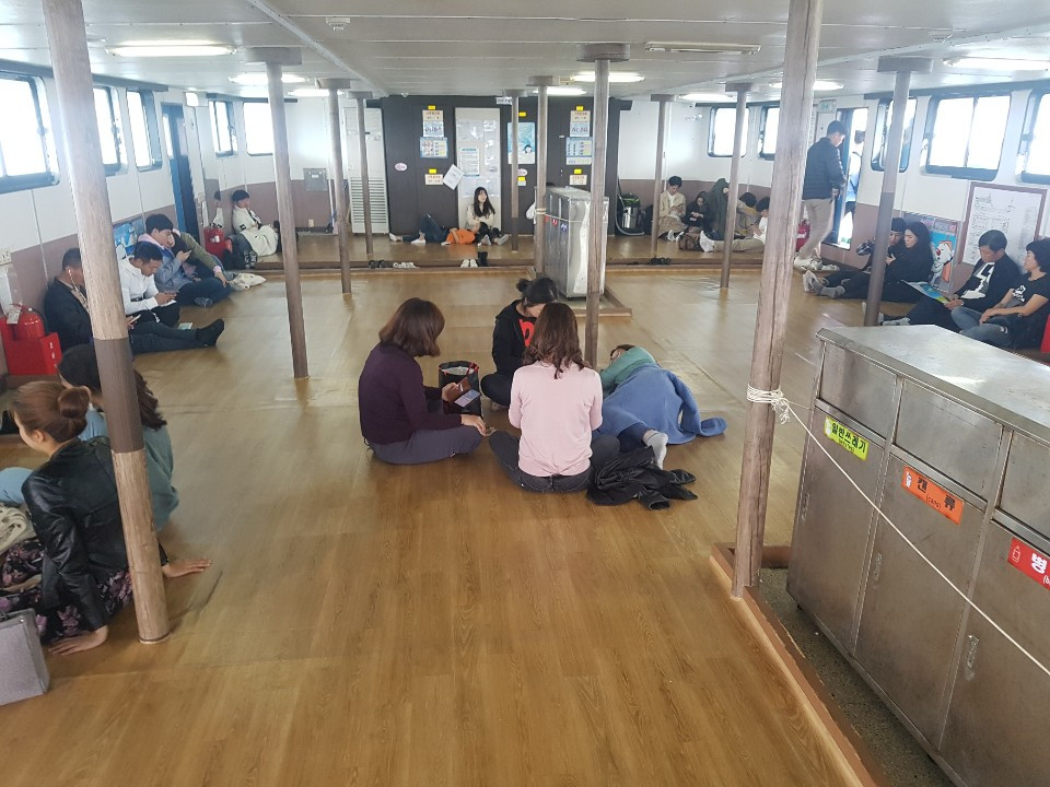 우도는 성산 유배의 마지막이기 적절하다. 짧게 정든 렌트카를 반납하고 버스를 기다려 성산항으로 향했다. 대합실엔 사람이 차고 넘쳐 우도로 가는 배를 기다린다. 기다릴 사람이 없고 복잡한 절차도 없으니 배에 금방 올랐다. 우도행 배엔 정해진 좌석이 없다. 마룻바닥에 사람들이 널브러져 앉으면 그곳이 곧 그들의 좌석이다. 나도 한 구석에 조용히 자리 잡았다. 사람들이 몰려들어와 눕지는 못 했다.
