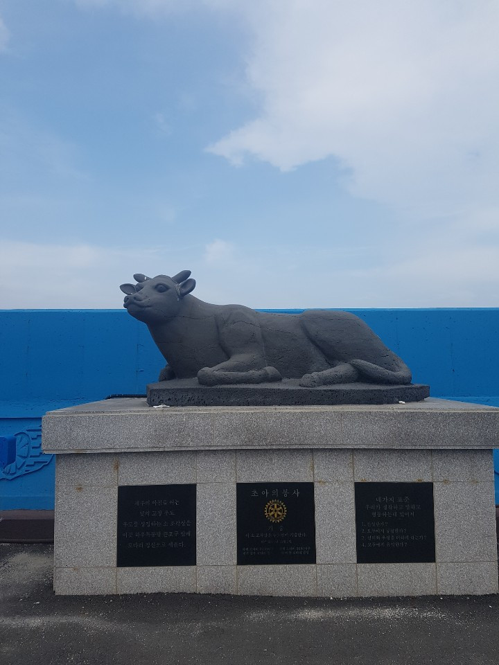 제주도가 그렇듯 우도 역시 화산활동으로 만들어진 작은 섬이다. 소를 닮았다 하여 우도다. 나눠준 안내책자에서 우도 지도를 살피니 도무지 소가 보이지 않았다. 미련이 남아 지도 속에서 계속 소 모양을 찾다가 포기했다. 배는 출발했고, 곧 우도에 도착했다. 잘생긴 소 동상이 객들을 맞았다. 오늘은 비가 내렸다. 소 동상이 아니었다면, 나는 우도를 비(雨)의 섬으로 기억했을지도 모르겠다.