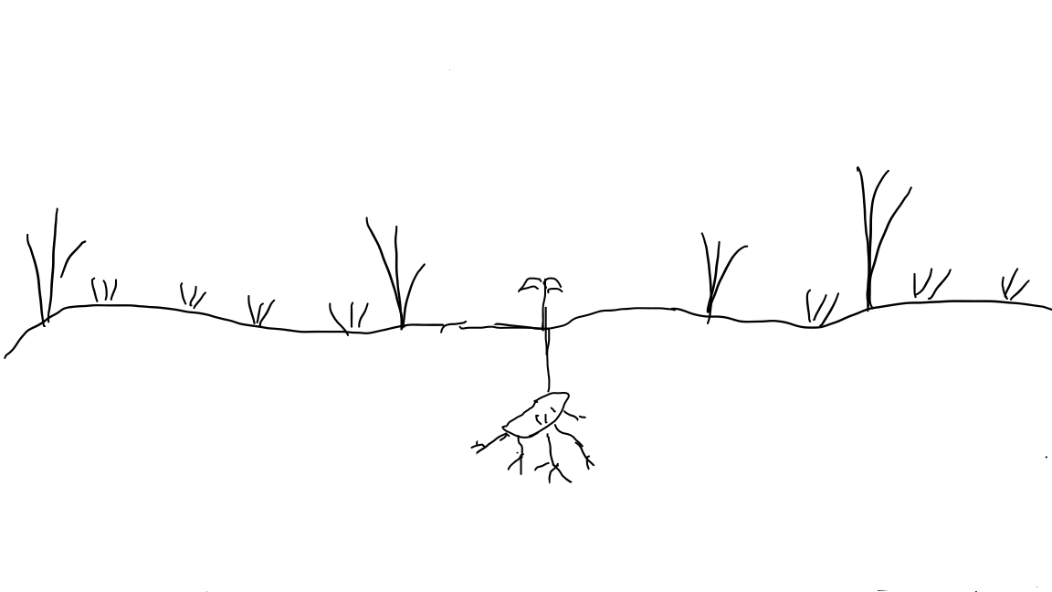 어느 그런 날, 무기력한 마음을 추스르고 무거운 몸을 달래며 고구마통을 정리하다가 발견한 고구마 한 알. 남겨뒀다 내일 다시 구울까, 잠시 고민하다가 뒤뜰에 묻었다. 작은 몸집으로 꼭꼭 숨어서 불과 바람을 피해 버텨온 그 한 알의 고구마가 어쩐지 나와 비슷했기에, 그리고 하루를 간신히 버텨낸 그런 작은 녀석이 어쩌면 다시 싹을 틔우고, 줄기를 세우고 다시 고구마를 주렁주렁 매달지도 모른다는 그런 묘한 기대감을 외면하기 싫었기에. (감정이입, 희망, 대리만족...지금 생각하면 오글거리고 민망하지만, 뭐 그런 마음이었던 것 같다.)