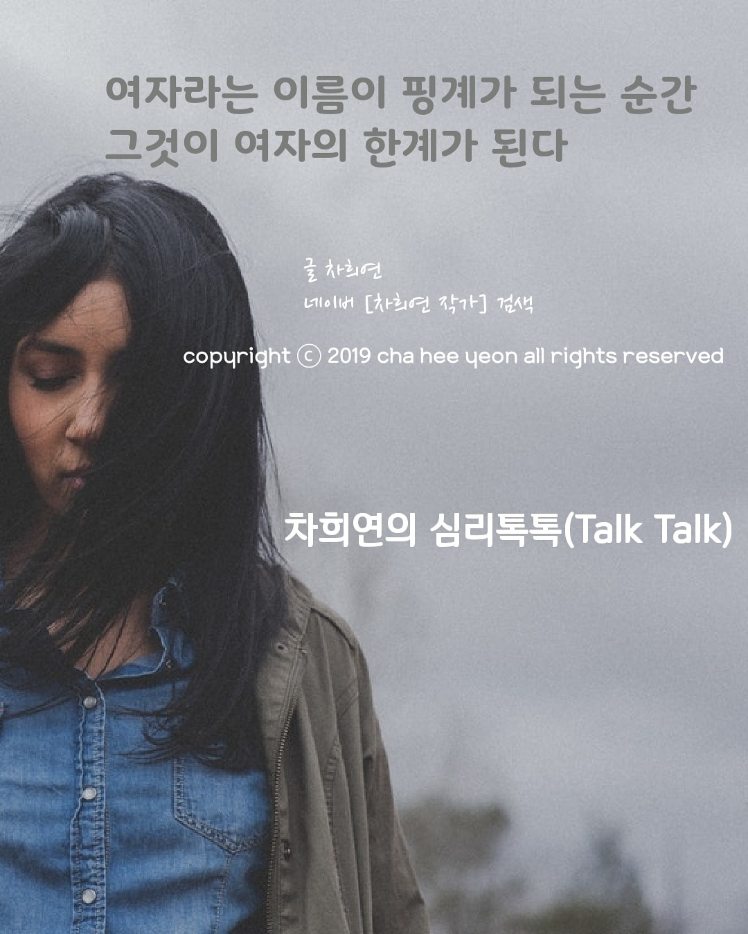 첫번째. 나는 여자가 아니라 사람이다. 누군가가 나에게 여성스럽다는 말을 할때 드디어 깨닫는다 '아 내가 여자였구나' 일을 하는 데에 남자와 여자가 따로 존재하지 않는다. 일은 그냥 일일 뿐이다 남자라서 더 힘든 일이 주어지고 여자라서 덜 힘든 일이 주어지는 것이 아니다. 그냥 직업이고 일이라면 그 일이 기준이 되어야한다.