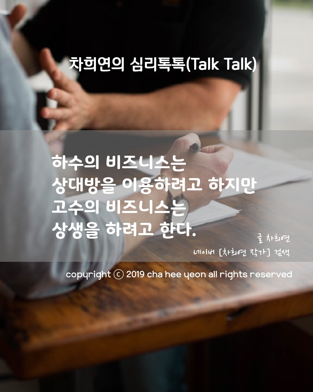 하수는 비즈니스 파트너에게 어떻게하면 더 받아낼 것인가를 고민한다.