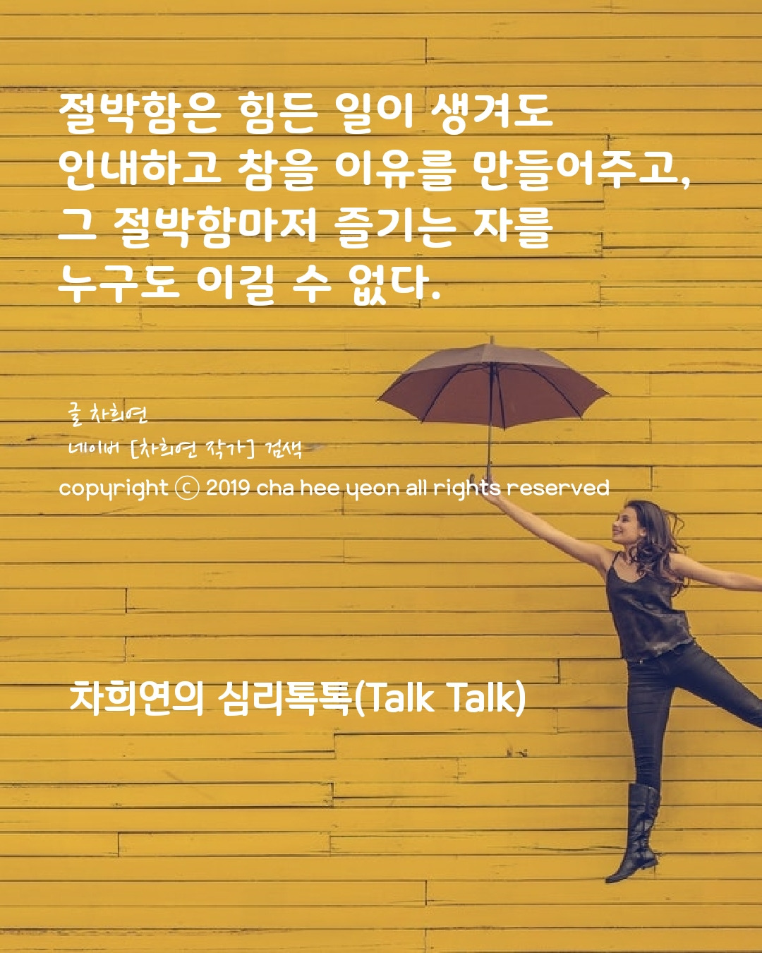 절박함은 힘든 일이 생겨도 인내하고 참을 이유를 만들어주고,