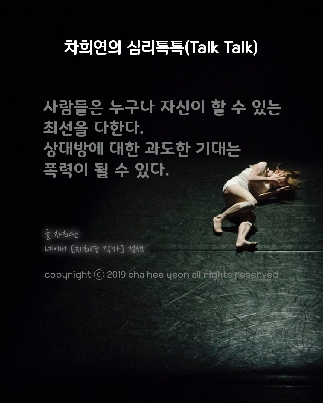 상대방은 이미 최선을 다하고 있는데 나혼자 기대를 하며 닥달한 것은 <기대라는 이름의 폭력>이었다.