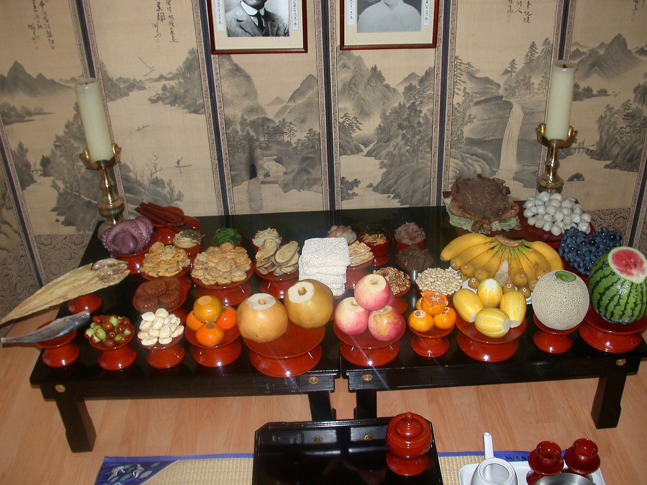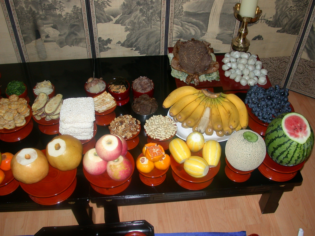 매캐한 향냄새가 온 집안을 떠돌고 아빠가 먹을 갈아 쓴 지방을 쓰시는 풍경. 하나 둘 제기를 가져와 제사상을 차리고 현관문을 반쯤 열어둔 채 고개를 조아리면서 빨리 끝나고 저거 다 먹을 생각에 군침이 고이던 아득한 기다림의 시간.