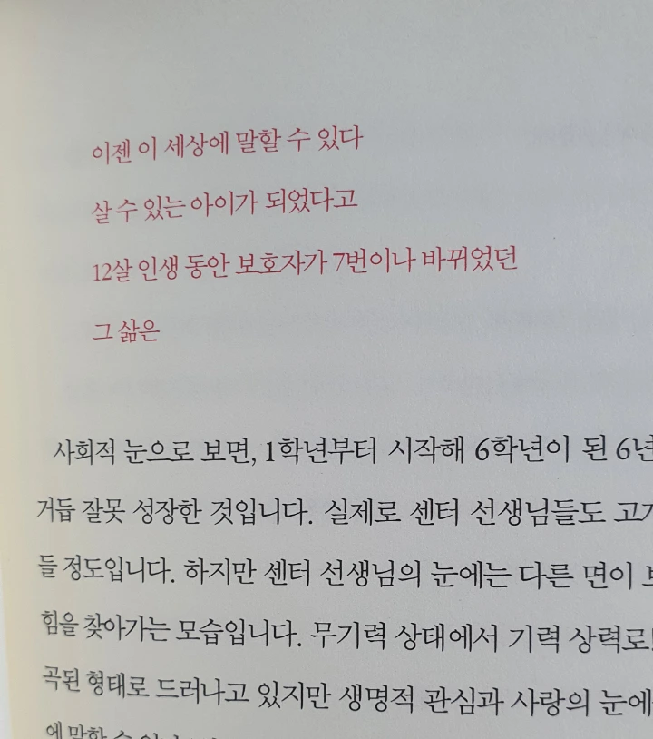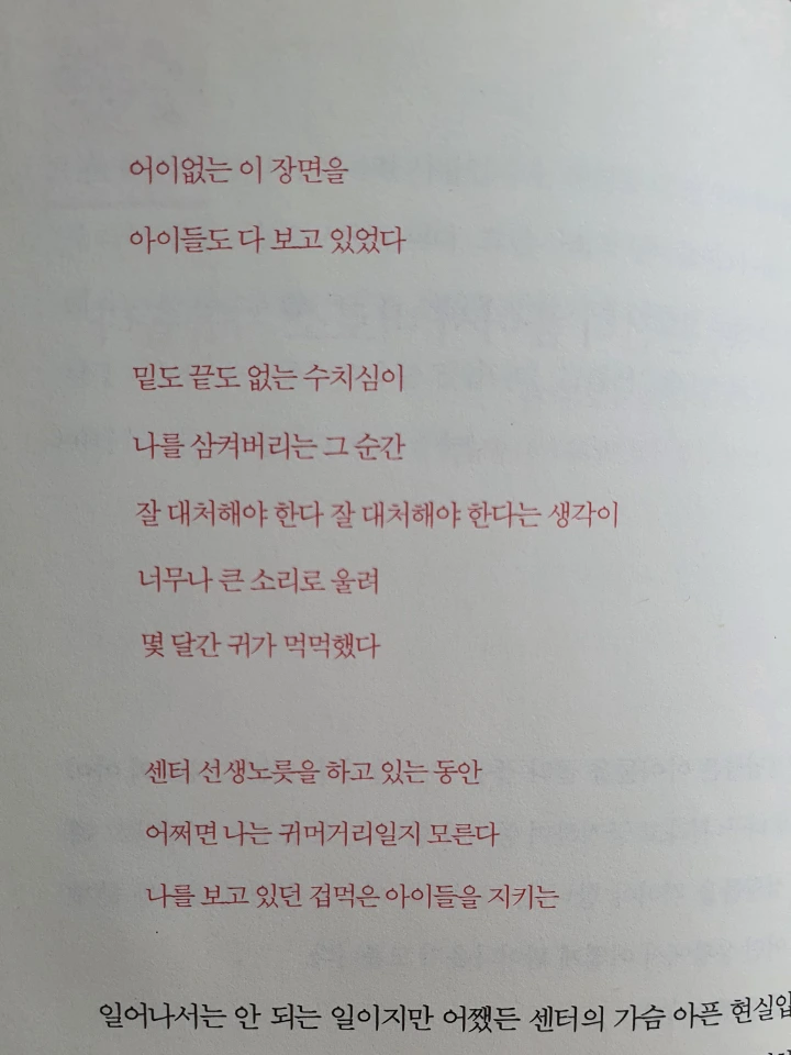 센터 아이들은 저마다의 감당하기 힘든 사연과 상처가 있고, 훈육을 넘어서는 양육이 절실한 경우가 대부분이다. 모르는 사람들은 쉽게 이야기한다. 다시는 못 그러도록 혼을 내야지. 가르칠 건 가르쳐야지. 우습게 보이면 계속 호구가 되는 거야. 그러다 더 나쁜 길로 빠지게 될 걸.
