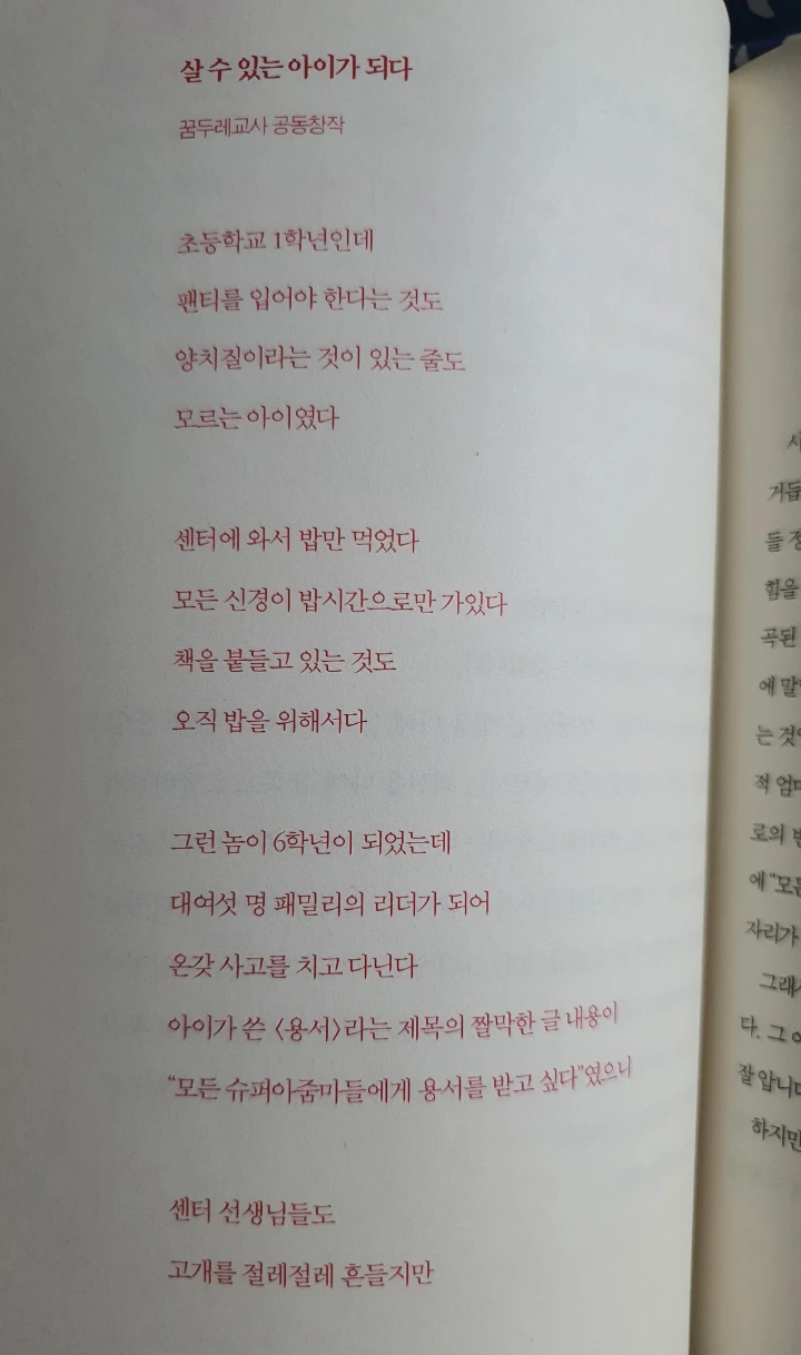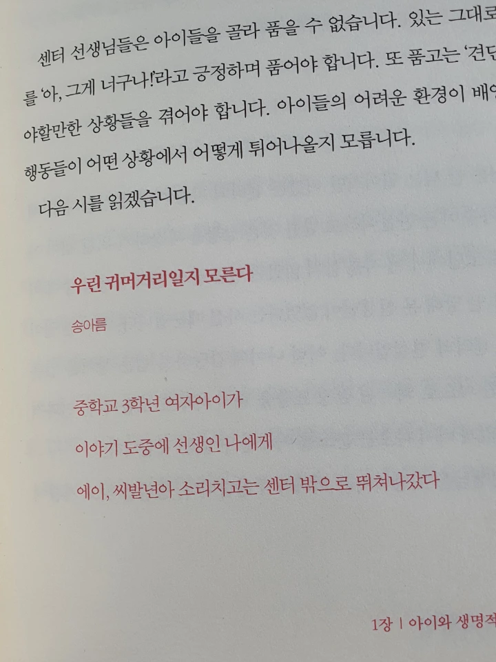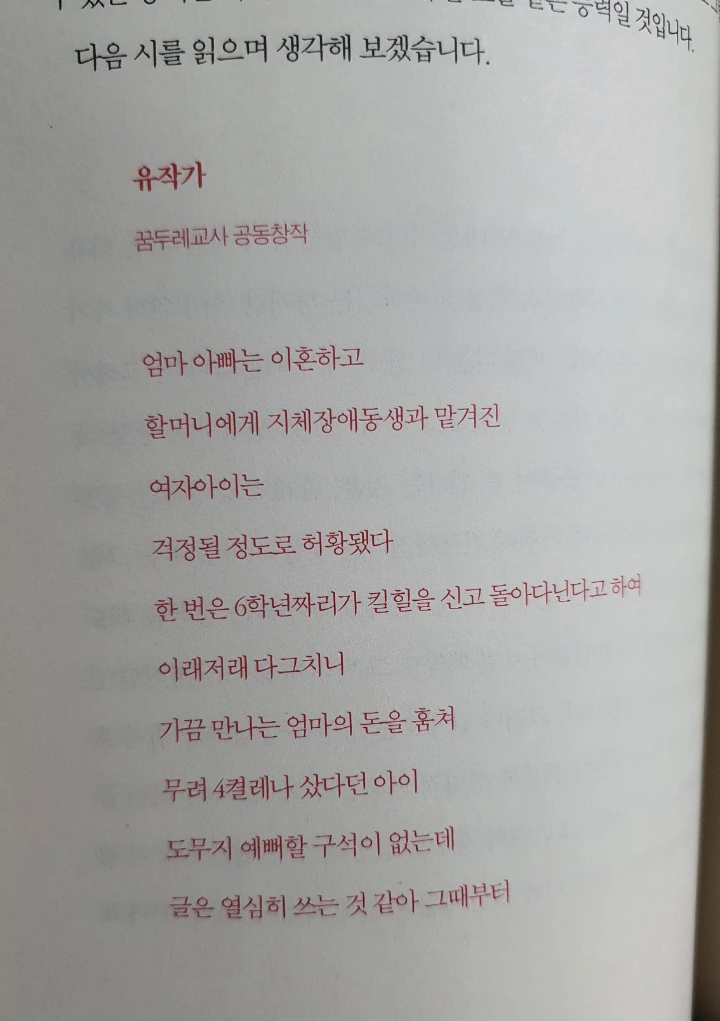 오철수 시인이 지역아동청소년센터 선생님들과 시 쓰기 수업을 하며 엮은 책이라 한다. 아는 사람만 아는 이 상황이, 눈앞에 펼쳐진다.