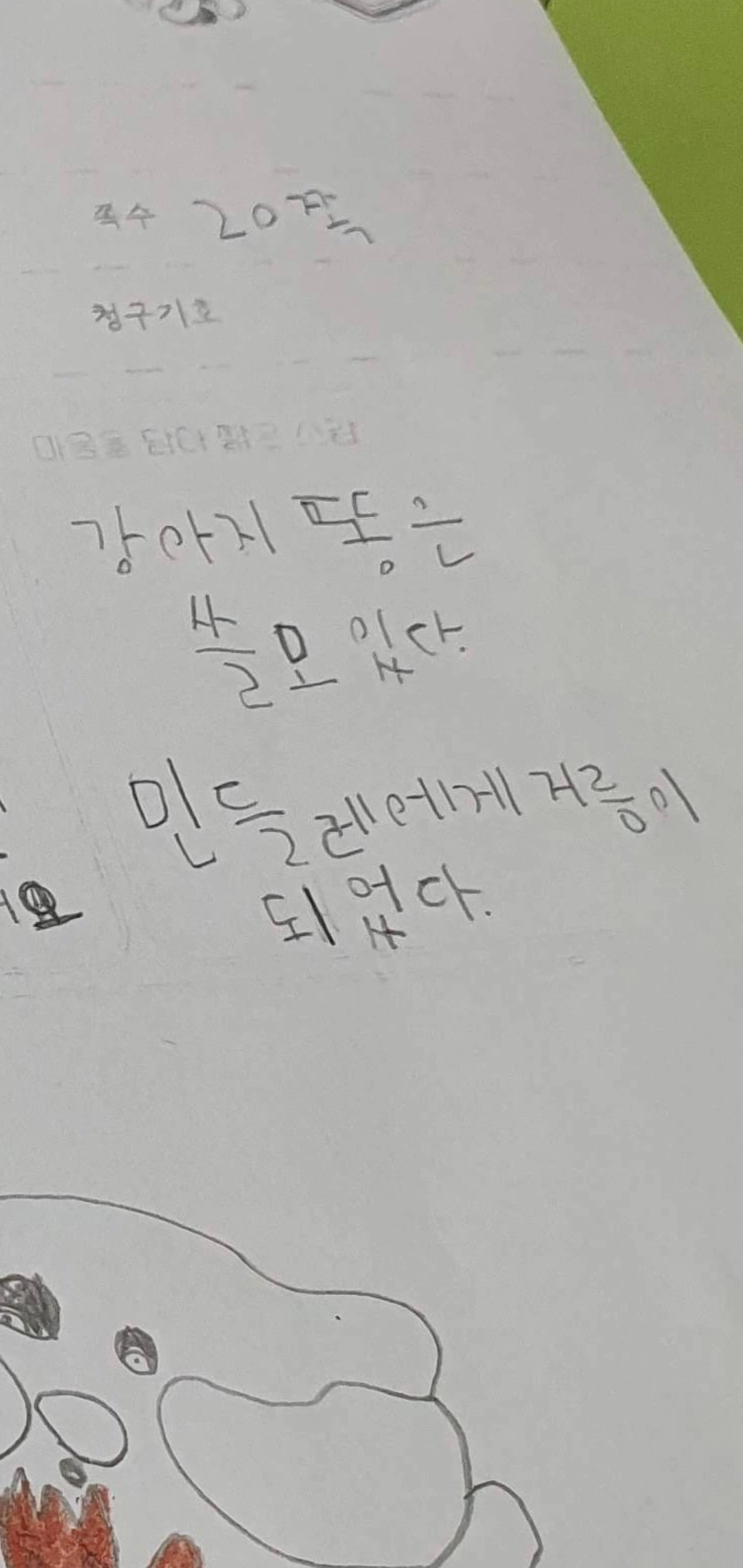 그날은 학교에서 또 무슨 중대한 사고를 쳤는지 종일 교실에도 못 들어가고 상담실에 격리되어 수업을 받았다 했다. 센터에서도 격리 보호하라는 공지가 전달되어 작은 교실에 우리 둘만 남았다. 날이 선 눈빛에 일부러 발을 구르고 내가 하는 모든 말에 딴청을 하는 아이를 데리고 오늘 공부는 글렀다, 무엇을 할까 하다가 강아지똥 그림책이 눈에 띄어 읽어주었다. 권정생 선생님의 책은 누구라도 무장해제시키는 힘이 있지 않은가. 그런데 읽어주는 내내 아이는 온몸으로 안 듣고 있는 티를 낸다. 다 읽고서 아이에게 어땠느냐고 묻자 자기는 할 말이 아무것도 없단다. 그럼 한 줄이라도 좋으니 글로 써보라고 종이를 건네주었다. 다른 날 같으면 종이를 박박 찢어버릴 법도 한 아이가 어쩐지 종이를 받아 들고 가만히 나를 보다가, 또 가만히 종이를 들여다본다.
