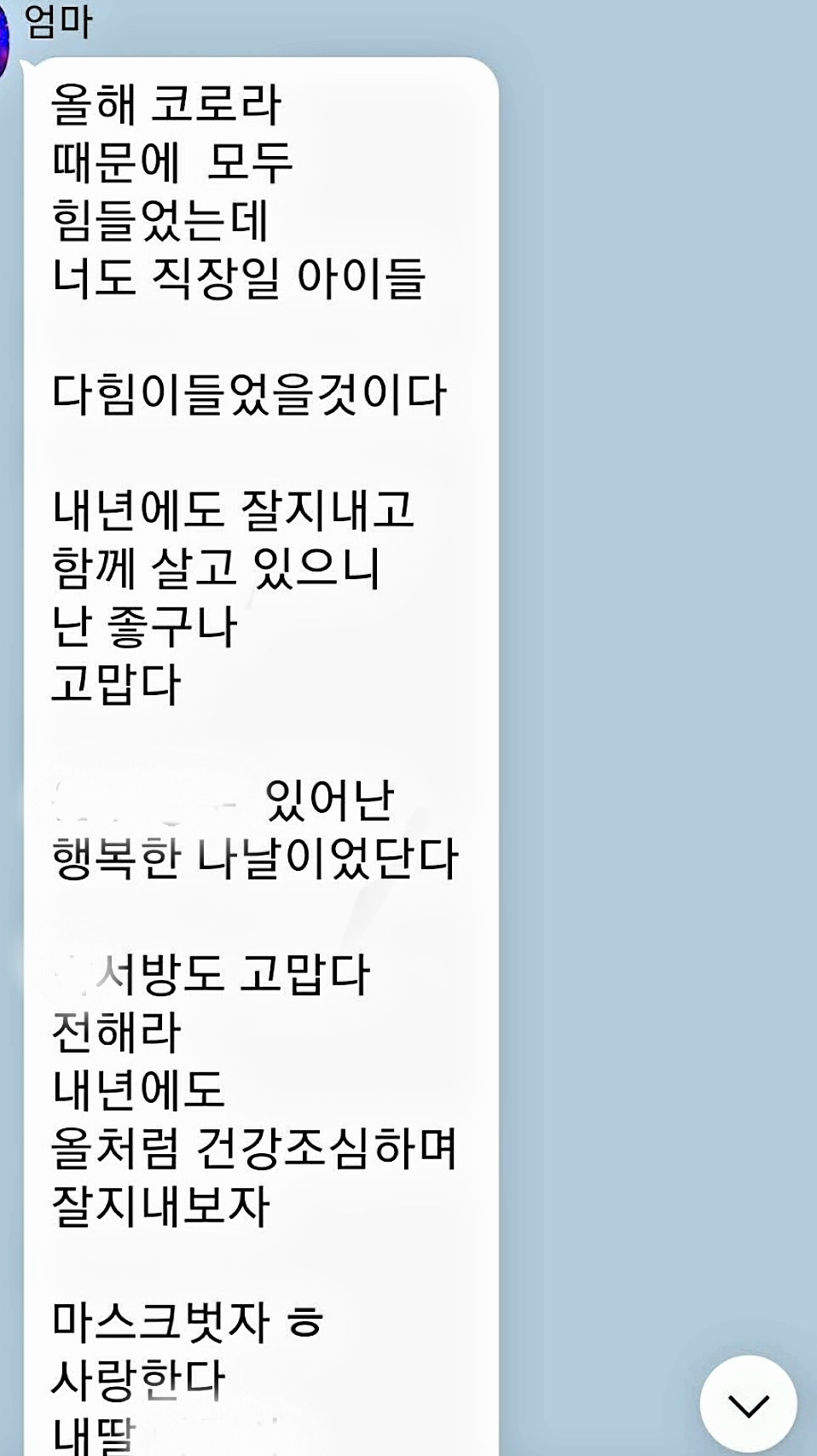 지금이 제일 걱정 없이 좋다고. 때때로 참 힘든 인생이었는데 너희와 있는 지금이 제일 평온하다고. 작년에는 내게 이런 카톡도 보냈다.