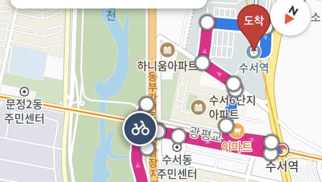 직장에서 기차역까지 가려고 따릉이가 달릴 길을 익혀봅니다