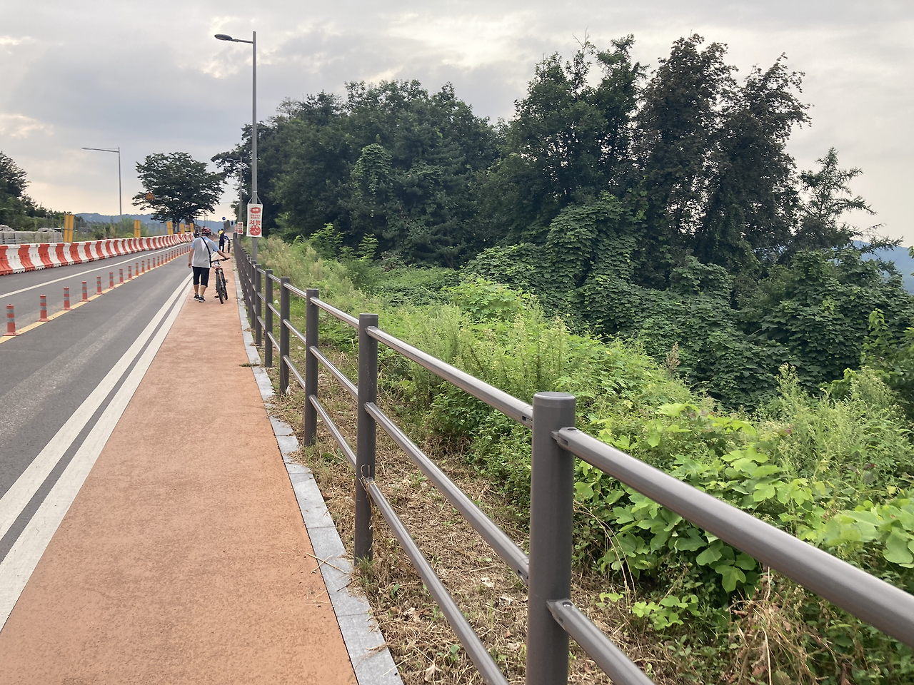 이 곳은 오르막길. 따릉이로 올라갔지만 뒤에 쫓아오는 사람들에게 민폐일 듯하여 끌고 올라갔다. 올라가는 길도 헉헉대며 끌었는데, 이 언덕 끝으로는 또 끝이 어디일까 알 수 없을 정도로 내리막이 이어진다. 브레이크 성능이 좋지 않은 경우라면 후덜덜하게 느껴지는 곳이다. 그래서 조심해야 할 곳, 한편으로는 페달에 발만 올려놓은 채, 점점 가속되는 속도감을 느끼며 여기까지 올라오는 데 들었던 땀에 젖은 옷을 시원하게 말려주는 듯한 바람폭포에 “이 맛에, 자전거 타는건가.” 싶어진다. 오르막의 그 긴장감과 한계에 도달한 것 같은(아직 나는 초보니까) 다리 근육이 마침내 내리막 직전에 도달했을 때의 그 기분. 정말 누구의 설명처럼 아드레날린이 솟구치는 때이다. 아, 이 느낌. 누군가가 자전거로 언덕을 오르고 싶어요! 라고 쓴 글을 보고 와, 이 분… 그랬는데 어떤 느낌인지 어렴풋이 느껴졌다.