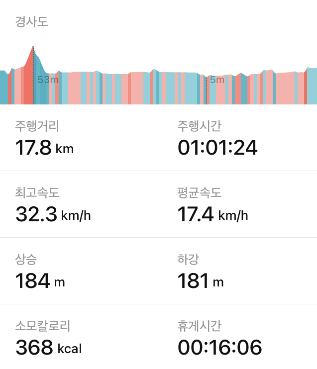 여유있는 퇴근 연습이 아니라, 기록 측정을 위한 퇴근 연습이 된 것이 아쉽지만, 최소한 1시간 30분이상 걸린다는 사실을 알게 되어 다행이다. 저번에 2시간 15분 걸려서 앞으로의 퇴근길이 걱정되었던 것에 비하면…. 많이 나아졌다. 길을 헤매고, 넘어져서 다치고, 수습하느라 그랬던 것이 꽤 많은 시간이 걸렸었구나. 얼마 남지 않은 자전거 퇴근길, 겨울에는 못 타고, 한 여름에도 못 타는 자전거 퇴근길. 할 수 있는 이 시기에 틈틈이, 기회를 만들어서 하려고 한다.