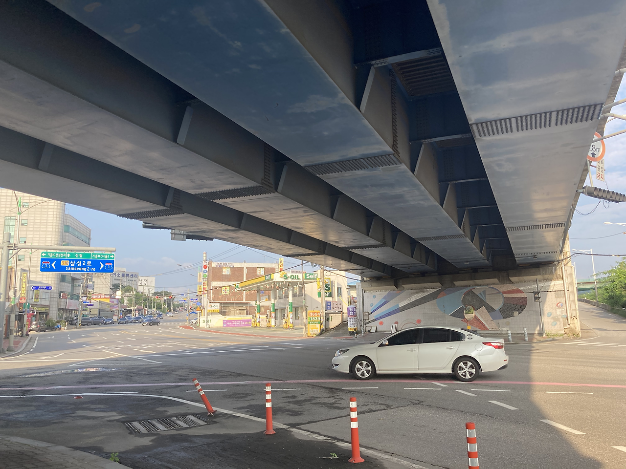 짧은 거리였지만 자동차 가까이에서 차마로서 주행해야하는 긴장되는 순간이었다. 차가 그리 많지 않았지만 어떤 자동차는 내 자전거와 살짝 가까운 느낌으로 옆을 스쳐지나갔다. 순간 운전자의 배려가 아쉽고 아찔했지만 핸들을 바짝 잡고 주행 페이스를 잃지 않으려고 하며 페달을 밟았다.