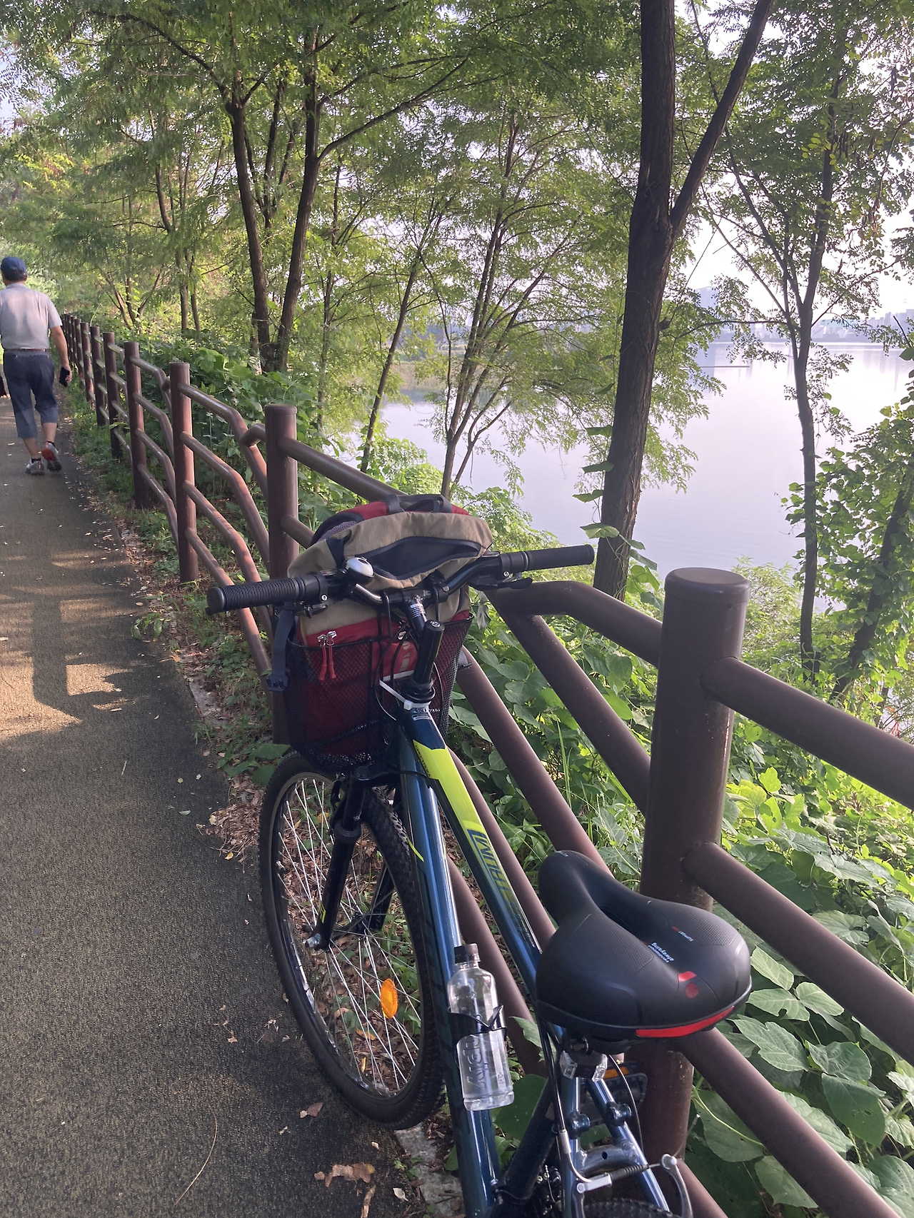 한참을 달리다가 호수가 눈이 부셔서 가기만 하는 것이 아쉬웠다. 자전거를 기대 놓고서 나도 함께 기대어 호수를 바라보았다. 몸이 가벼워지듯, 마음도 가벼워지고, 그렇게 흐뭇할 수가 없었다. 탁 트인 정경이 주는 시원함과 호수를 불어온 바람이 내 몸을 감싸며 땀을 식혀주는데 시원함이 배가 되어 이 순간을 더 즐기고 싶었다. 이런 재미로 자전거 나들이 오는구나. 다음 번에도 자전거로 로컬 나들이를 기약했다. 다음엔 우리 동네 어디로 갈지 벌써부터 마음이 설렜다.
