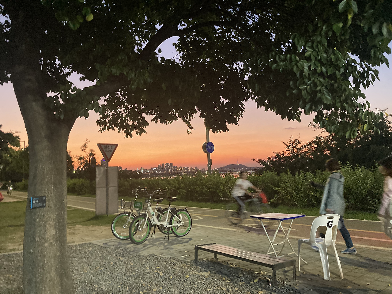 한강에서 끓여먹는 컵라면이 왜 한강 스넥의 상징처럼 됐을까? 미디어에서 유경험자들의 이야기가 전파를 타고 종종 등장했고, 실제로도 제법 맛있기 때문이겠지. 우리는 한강 라면 때문만은 아니고 따릉이를 타고 갈 수 있는 최적의 공간으로, 한강으로 정했다.