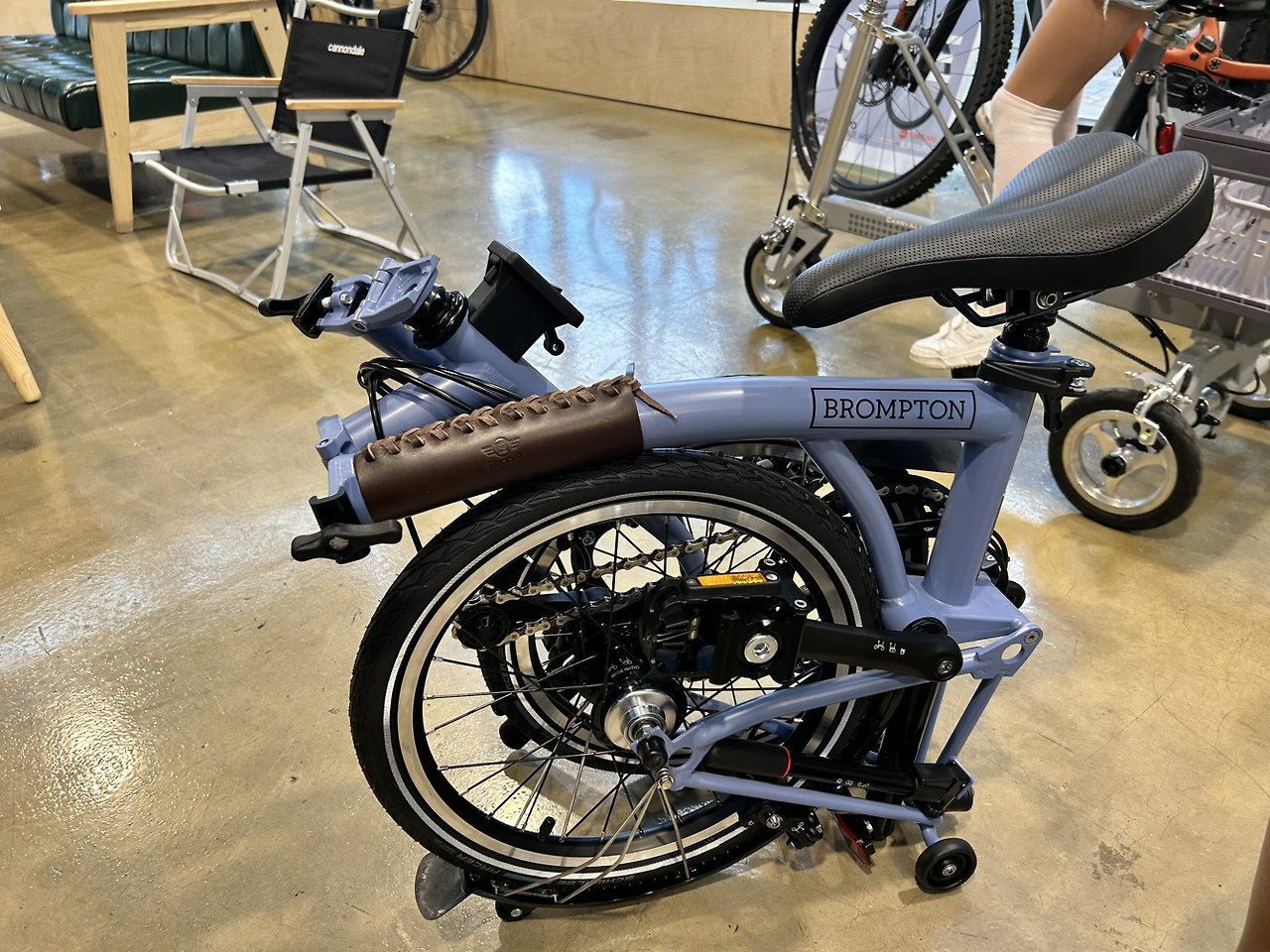 브롬톤 매장에서 많은 색을 보지는 못했다. 사장님이 8월초에 입고 예정이라고 하는데, 내가 구입할 당시엔 많은 색깔이 없었다. 그래도 이 라이트블루? 가 있어서 다행이다. 내가 이걸 민트라고 하자, 사장님이 색 명칭을 정정해 주셨는데. 내거 아니니, 기억이 잘 안 난다.