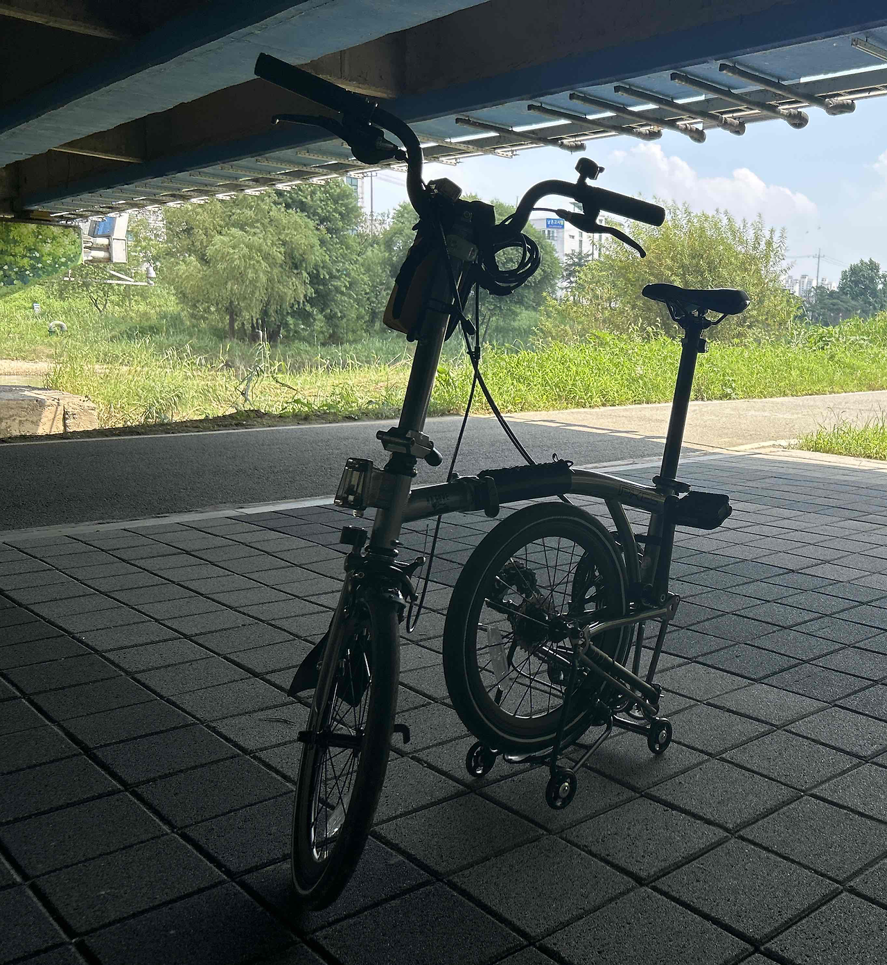 나의 명품조연이도 유사브롬톤이라 가방 거치대가 똑같이 설치되어 있었다. 이 거치대에 맞는 전용 가방을 많이 보았다. 너무 커도 안 되고, 너무 작아도 안 되고 적절한 사이즈여야했다. 나는 운전할 때 많이 힘들지 않도록 M사이즈로 샀는데, 비교해보니 몇 개 둘어가지 않아서 반품을 했다. 결국 비슷함 가방들 사이에서 고민하다가 가격차이도 얼마나지 않아서 동생 것과 같이 L 사이즈 가방을 샀다. 우리 둘이 서로 공유할 건 아니니까. 각자의 가방으로.