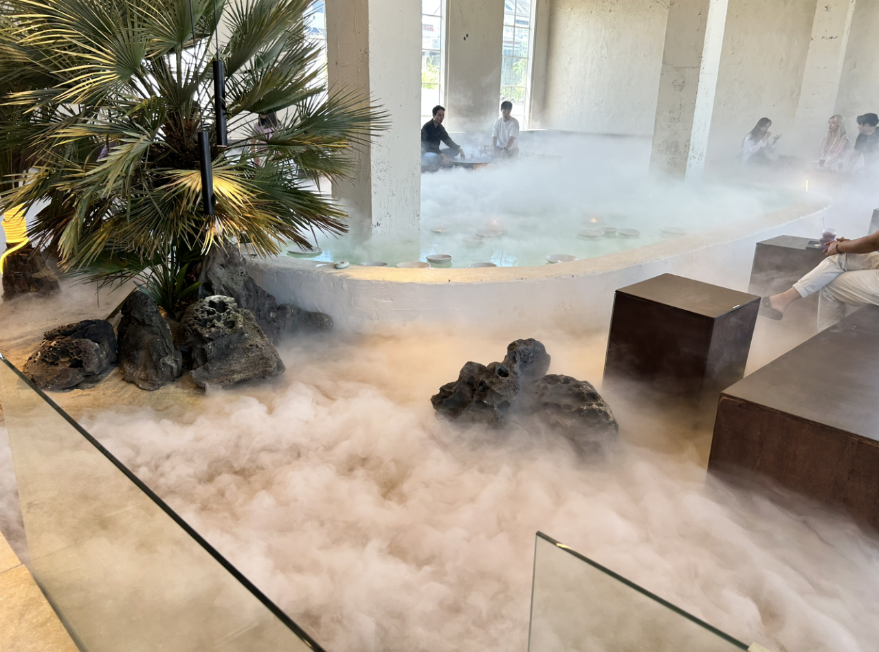 '뎅그렁 뎅그렁' 소리가 마음의 깊은 곳을 만나게 해주는 듯한 신비한 카페였다. 우리는 바깥 풍경도 너무 좋아서 음료를 마시다가 너무 더워서 안에 들어와서 먹었다. 이윽고, 또다른 느낌이 연출되었다. 안개가 뿜어져 나왔다. 사람들은 사진을 직기 시작했고, 나는 그곳에 잠시 머물렀다. 이 뜨거운 여름, 하얀 백사장에, 차가운 안개가 발 밑에서 뿜어져나오고, 마치 신선 숲 속에 들어온 듯한 그 느낌. 자전거를 타고 우연히 들렀던 이곳에 동생과 나란히 앉았다. 잠시 앉아 접시가 내는 공명음을 들으며 마음을 정화하는 기분이었다.